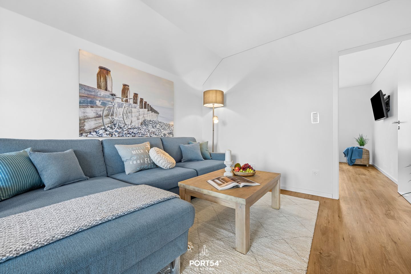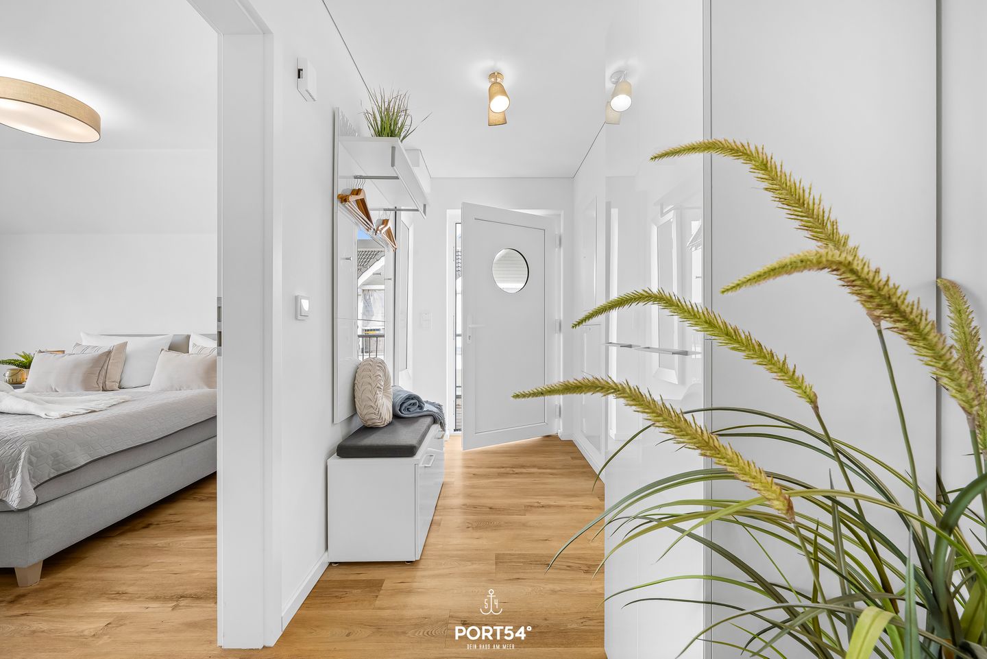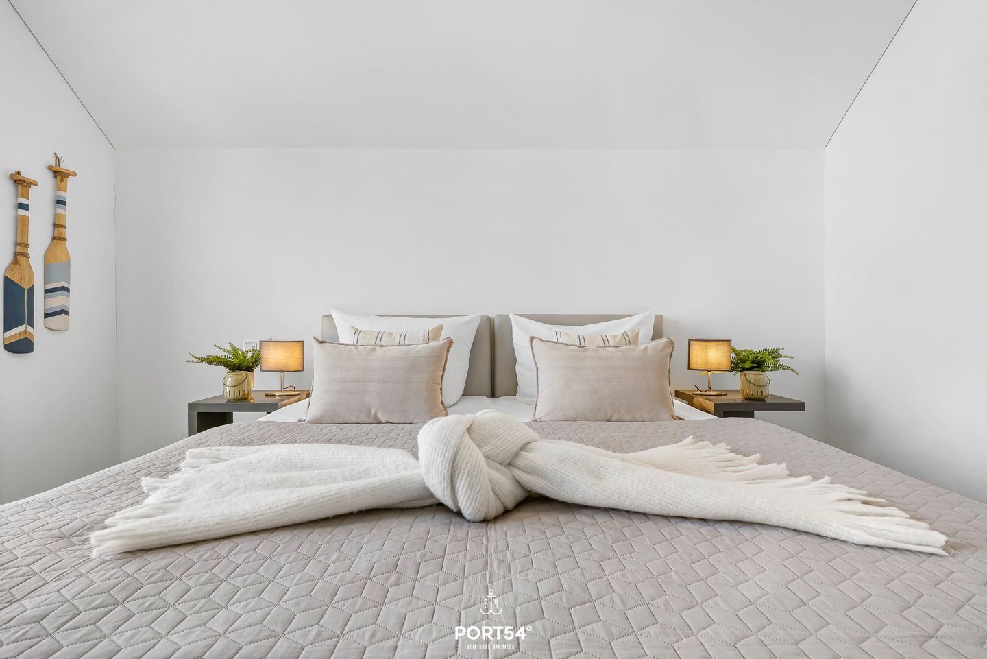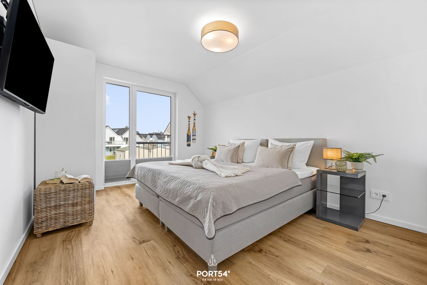 Die Ferienwohnung verfügt über zwei Schlafzimmer: eines mit einem komfortablen Doppelbett (180 × 200 cm), das zweite mit zwei Einzelbetten (je 80 × 200 cm). Beide Schlafzimmer sind mit Flachbild-TV, Kleiderschrank und Plissees ausgestattet und bieten ideale Rückzugsorte für erholsame Nächte. Das moderne Badezimmer mit bodengleicher Dusche sorgt nach einem Strandtag für angenehme Erfrischung. In allen Räumen sorgt die Fußbodenheizung für wohlige Wärme.