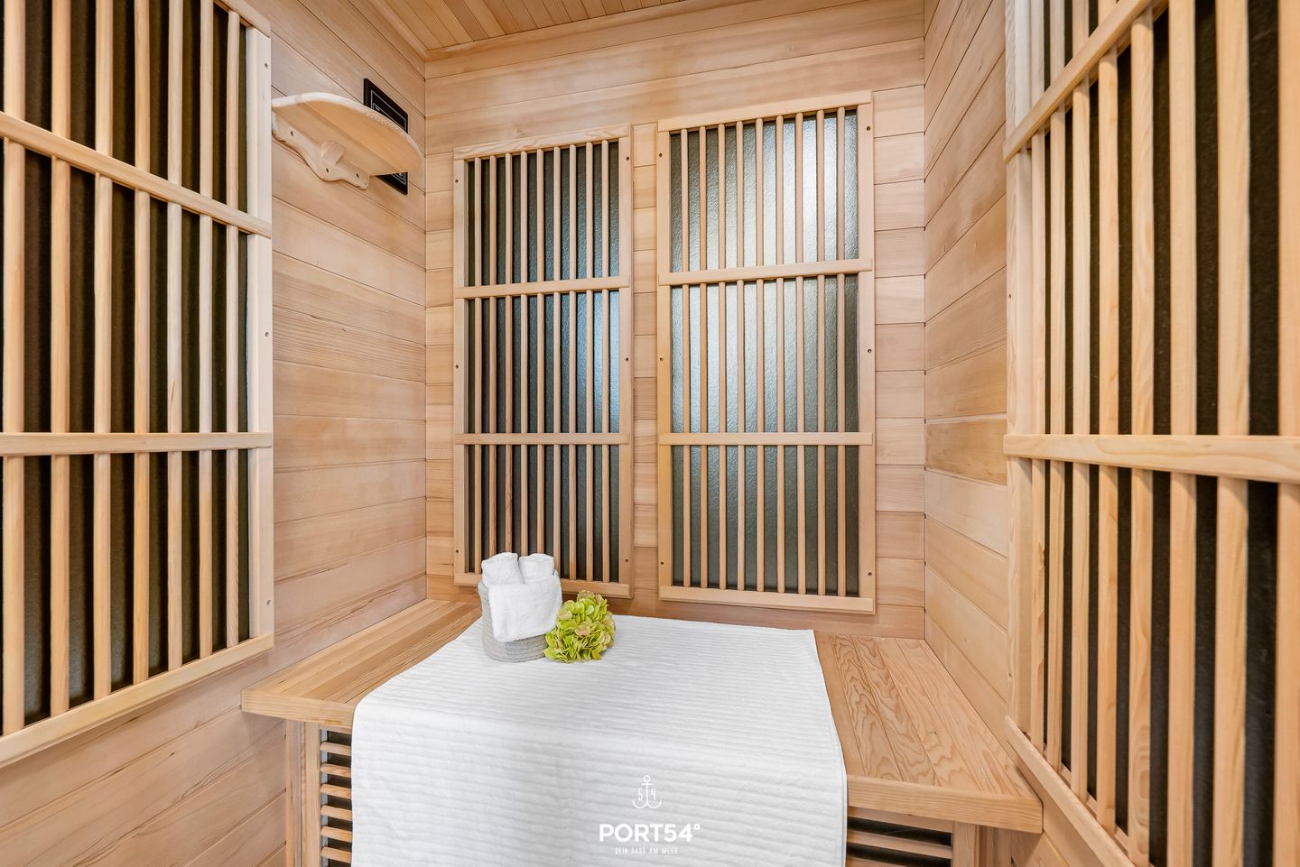 Ein besonderes Highlight ist die private Sauna, in der Sie nach einem aktiven Tag wunderbar entspannen können. Auf dem Balkon laden ein Strandkorb sowie Gartenmöbel zum Verweilen ein. Ein Elektrogrill bietet zudem die Möglichkeit für gemütliche Grillabende an der frischen Ostseeluft.
