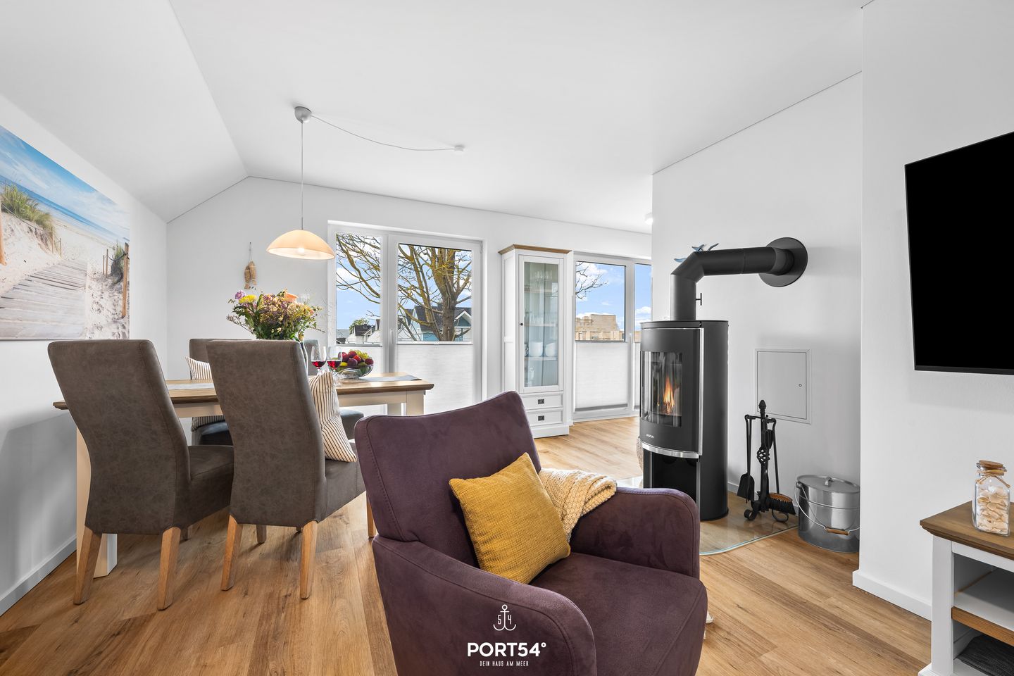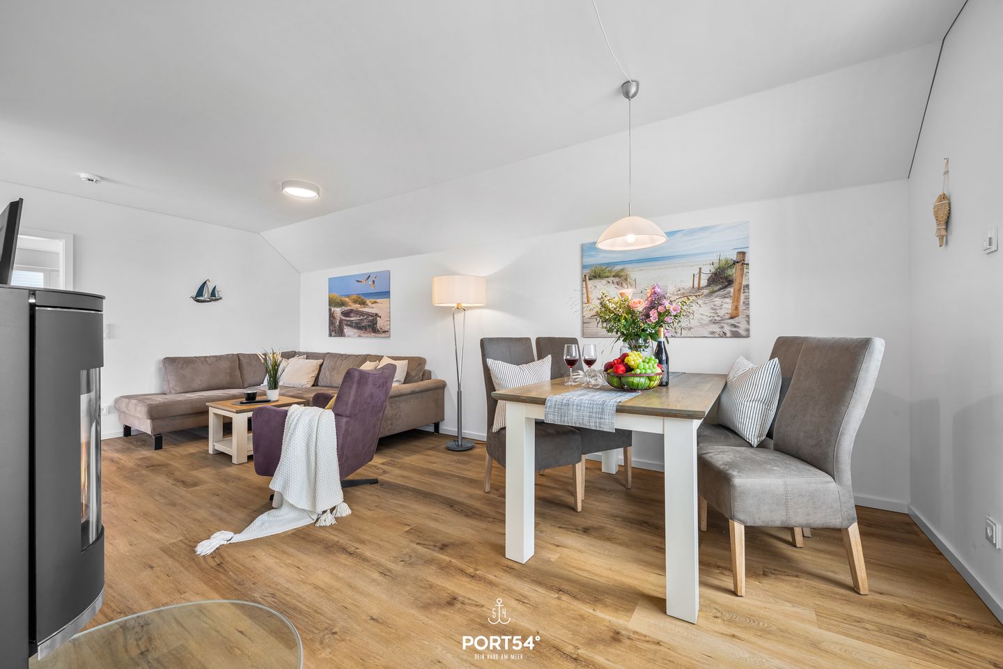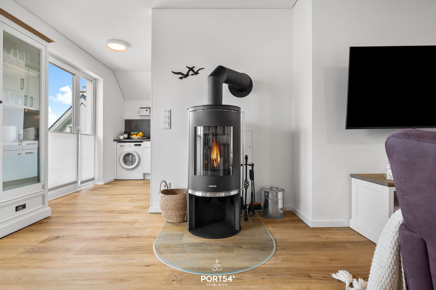 Willkommen in der "Küstenkrabbe" in Olpenitz! Ankommen und Wohlfühlen! Diese zauberhafte Ferienwohnung bietet auf großzügigen 82m² alles, was das Herz begehrt. Ein lichtdurchfluteter Wohn- und Essbereich verspricht entspannte Stunden, während zwei Schlafzimmer mit jeweils einem gemütlichen Doppelbett (180x200cm), Verdunkelungsmöglichkeiten und Insektenschutzgittern eine himmlische Nachtruhe garantieren. Zudem verfügen beide Schlafzimmer über einen eigenen Flachbild-TV (43 Zoll) mit Magenta TV für nächtliches Entertainment. Abends laden das kuschelige Sofa vor dem Flachbild-TV und das Knistern des Kamins zu gemütlichen Stunden ein. Die voll ausgestattete Küche lässt keine Wünsche offen – kochen Sie nach Lust und Laune! Ihr Tag beginnt im modernen Badezimmer, das nicht nur mit einem Handtuchtrockner, einem Föhn und einer erfrischenden ebenerdigen Dusche aufwartet, sondern auch mit dem Highlight: einer eigenen Infrarotsauna – Wellness pur! Bei gutem Wetter genießen Sie die Sonne auf den zwei Balkonen und lassen Sie laue Sommerabende mit der Familie beim Grillen ausklingen. Vor dem Haus steht ein Stellplatz mit E-Ladesäule für Ihr Elektrofahrzeug bereit, während im abschließbaren Fahrradschuppen mit Ladestation Ihre Fahrräder untergestellt werden können.