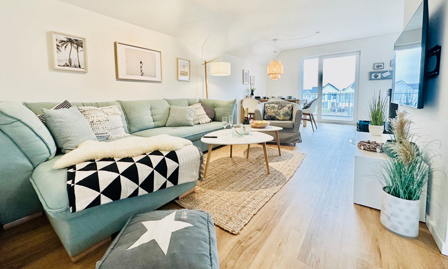 Freuen Sie sich auf eine stilvoll eingerichtete Ferienwohnung im Beachhouse-Stil, die durch ihre durchdachte Ausstattung überzeugt. Die großzügige Ferienwohnung im Obergeschoss bietet Platz für bis zu 5 Personen und besticht durch ein offenes Raumkonzept sowie einen sonnigen Süd-West-Balkon. Hier können Sie den Alltag hinter sich lassen und in entspannter Atmosphäre Urlaub machen. Der offene Wohn-/Essbereich, der durch bodentiefe Fensterfronten und den großen Balkon viel Licht hereinlässt, bildet das Herzstück der Wohnung. Die gemütliche Sofalandschaft lädt zum Entspannen ein, während der Esstisch ideale Bedingungen für gesellige Abende bietet. Sollte das norddeutsche Wetter einmal ungemütlich werden, sorgen ein Kamin und eine Infrarot-Sauna für wohlige Wärme. Bei schönem Wetter bietet der große Balkon die perfekte Gelegenheit, die frische Ostseeluft zu genießen oder einen gemütlichen Grillabend zu veranstalten. Die offene, gut ausgestattete Küche lässt Hobbyköche voll auf ihre Kosten kommen.
