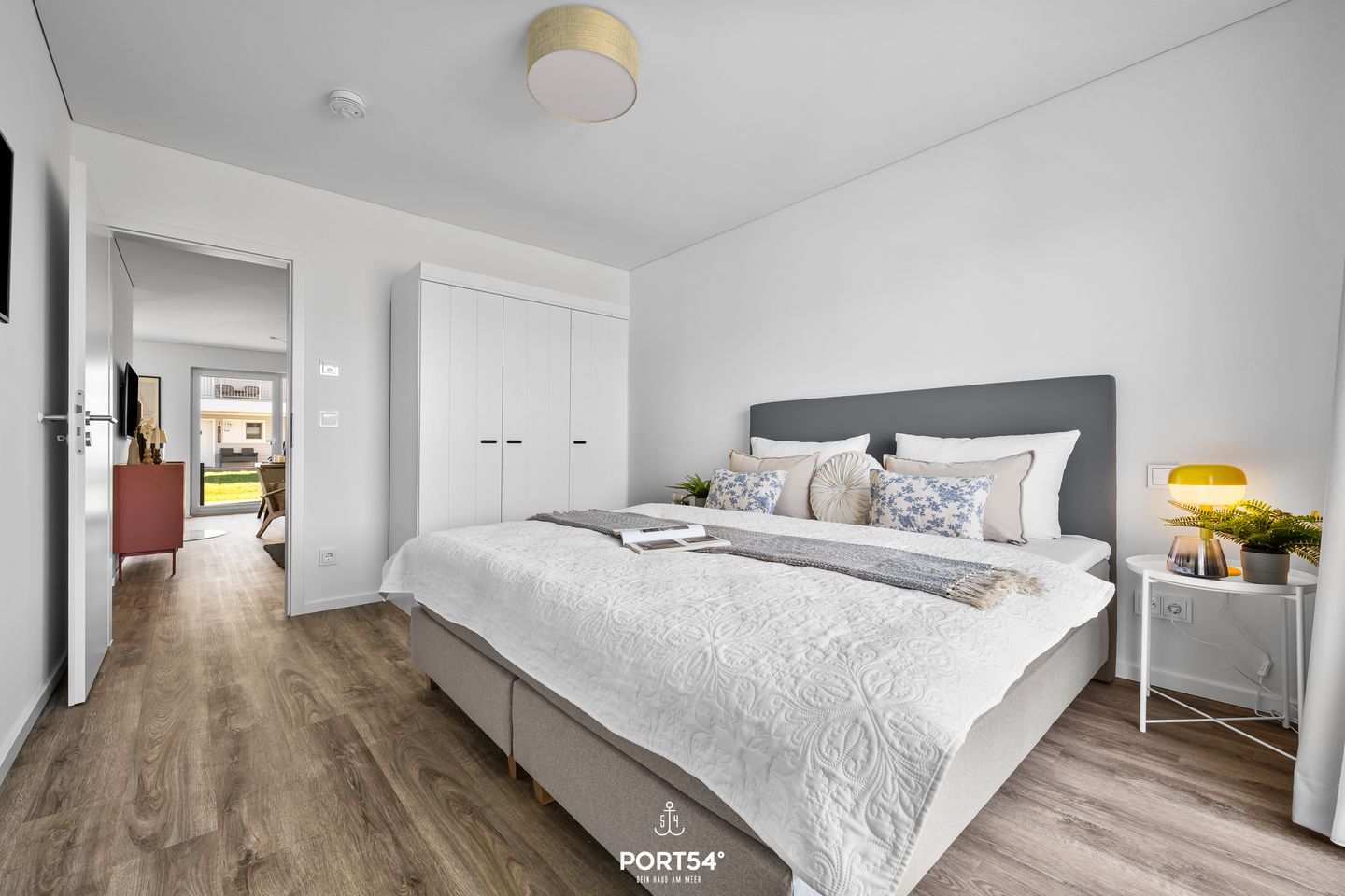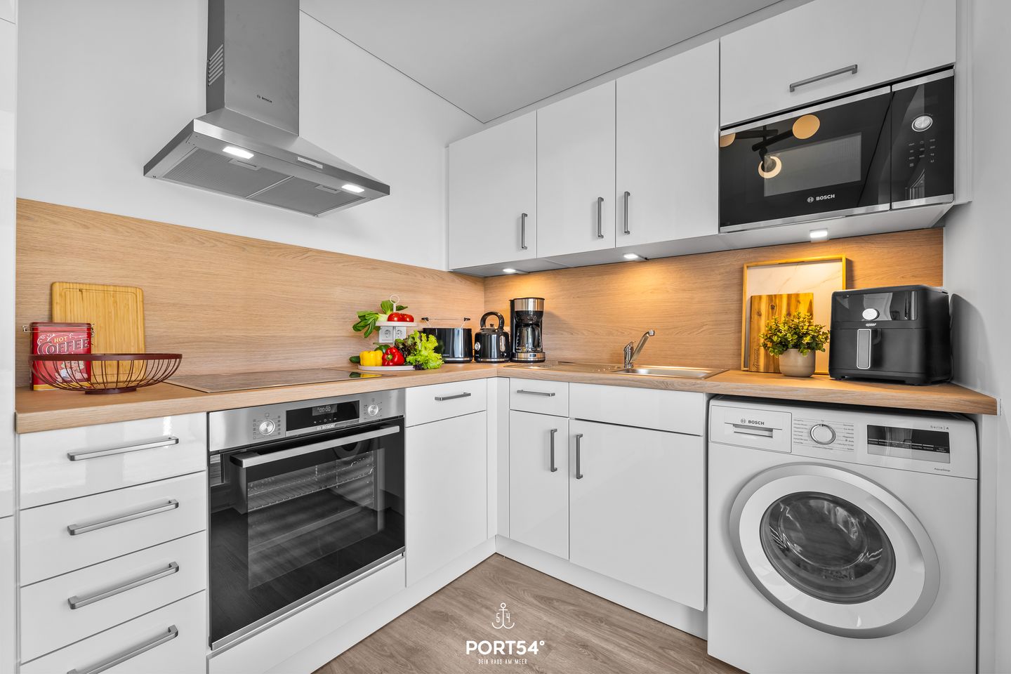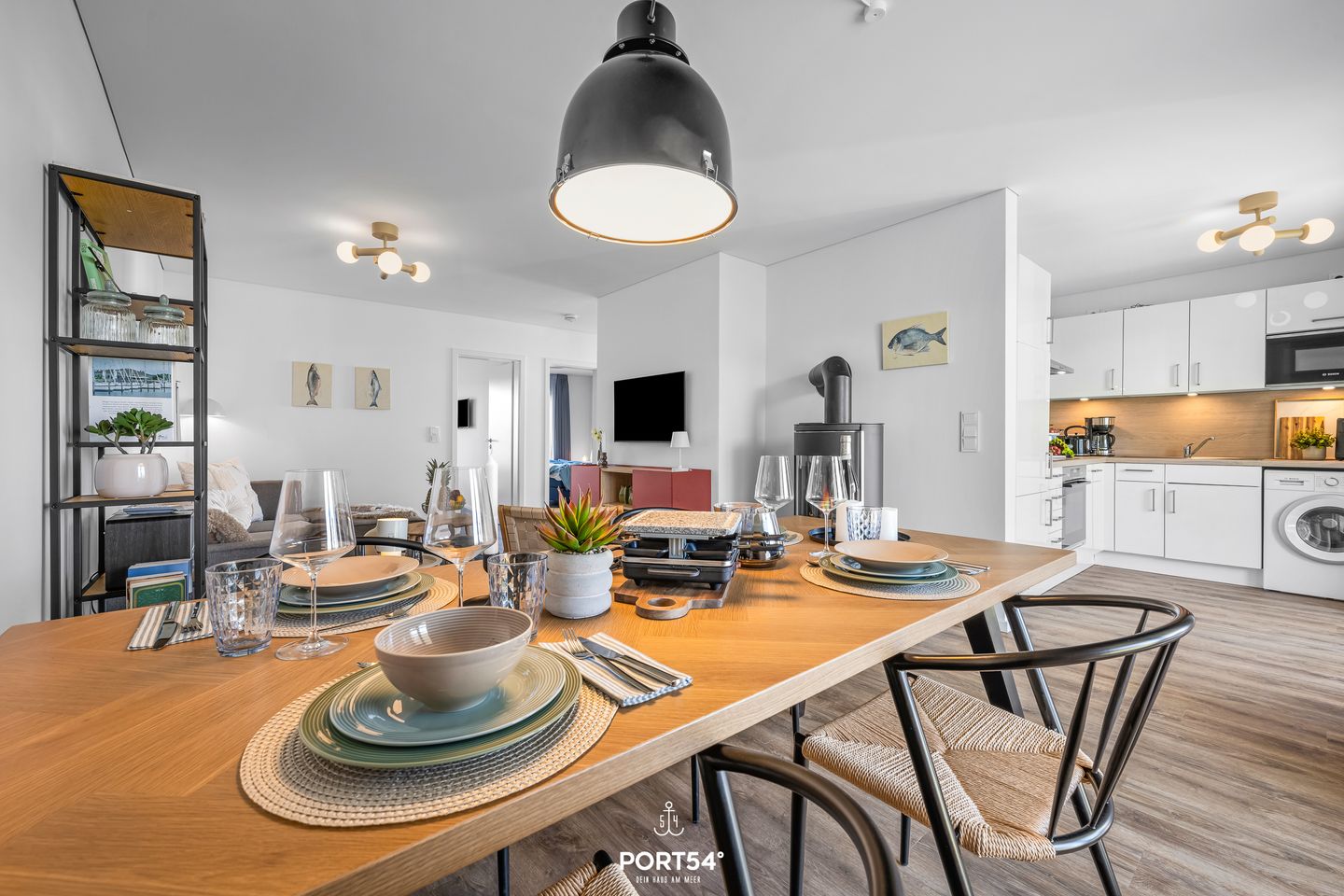 Die im Jahr 2025 fertiggestellte Unterkunft befindet sich im Erdgeschoss einer Ferienanlage und verfügt drei Zimmer, die sich ideal für bis zu vier Personen eignen. Dank der geschickten Raumaufteilung finden Familien, Paare oder kleine Reisegruppen beste Voraussetzungen für einen erholsamen Aufenthalt vor. Der offen gestaltete Wohn- und Essbereich bildet das Herzstück der Wohnung. Die hochwertige, moderne Einbauküche ist offen zum Wohnzimmer angelegt und lässt hinsichtlich Ausstattung keine Wünsche offen: Hier stehen Ihnen ein Induktionsherd, Backofen, Kühlschrank mit integriertem Gefrierfach, Spülmaschine, Heißluftfritteuse , Mikrowelle, Kaffeemaschine, Wasserkocher, Toaster, Mixer sowie sämtliche Küchenutensilien und Geschirr zur Verfügung. Für gemeinsames Kochen und genussvolles Essen sorgt der Esstisch im Essbereich. Die Fußbodenheizung gewährleistet auch in der kühleren Jahreszeit angenehme Temperaturen. Im Wohnbereich erwartet Sie ein gemütliches Sofa, ein Kaminofen für behagliche Stunden sowie zwei digitale Fernseher mit WLAN-Internetzugang – ideale Voraussetzungen für entspannte Abende. Zwei separate Schlafzimmer laden zum Ausruhen und Entspannen ein. Beide Räume sind so konzipiert, dass bis zu vier Schlafmöglichkeiten zur Verfügung stehen. Familienfreundlichkeit wird großgeschrieben: Ein Babybett mit Matratze und ein Kinderhochstuhl stehen bereit. Das großzügige Badezimmer ist mit einer bodengleichen Dusche, Waschbecken, Spiegel, WC und Fenster ausgestattet. Für Ihr Wohlbefinden verfügt die Wohnung über eine Infrarotkabine. Ein Haartrockner, Waschmaschine sowie Wäscheständer, Staubsauger und weitere hilfreiche Ausstattungen runden das Angebot ab. Die Erholung im Außenbereich ermöglicht Ihnen eine private Terrasse mit Gartenmöbeln und Sonnenliegen. Ein Elektrogrill steht bereit, ebenso wie ein gepflegter Garten mit Liegewiese. Nach einem erlebnisreichen Tag an der Ostsee können Sie hier entspannen und die frische Meeresluft genießen. Für Ihren PKW steht ein Privatparkplatz und ein abschließbarer Fahrradschuppen direkt an der Unterkunft zur Verfügung. Auch Hunde sind herzlich willkommen.