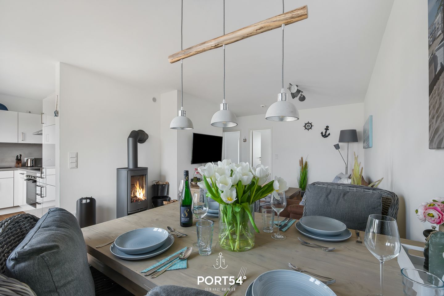 Gemütliche Doppelhaushälfte mit Sauna und Strandnähe! Auf ca.76m² bietet die "Weisse Düne II" mit 2 Schlafzimmern und einem großen offenen Wohn-/Essbereich viel Platz für bis zu 4 Personen. Durch die sehr gute Lage kommt sofort Urlaubsfeeling auf und sogar der Strand ist in wenigen Gehminuten zu erreichen. Das ebenerdige Haus hat einen modernen, offenen Wohn-/Essbereich mit einer angrenzenden vollausgestatteten Küche, die zudem über eine Filterkaffeemaschine und eine Nespressomaschine verfügt. Im Wohnbereich ist ein Kamin, vor dem Sie es sich in der kalten Jahreszeit gemütlich machen können. Die Küche ist hochwertig und voll ausgestattet, hier lässt sich hervorragend ein geselliger Kochabend veranstalten. Das eine der beiden Schlafzimmer verfügt über ein Doppelbett, das andere hat 2 Einzelbetten. Hier können Sie im Urlaub ausschlafen und dem Alltagsstress entfliehen. Im Badezimmer lässt es sich hervorragend in der der Infrarot-Sauna entspannen. Auf der angrenzenden Terrasse können Sie den Tag in Ruhe ausklingen lassen und die schönen Sonnenuntergänge genießen. Vor der Unterkunft parken Sie Ihren PKW kostenfrei. Außerdem gibt es einen abschließbaren Fahrradschuppen für Ihre Fahrräder vor dem Haus.
