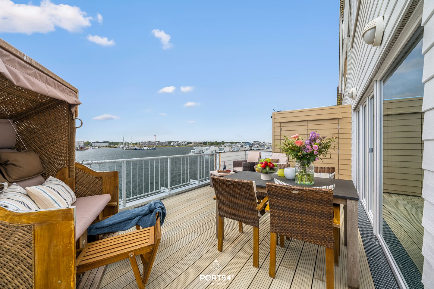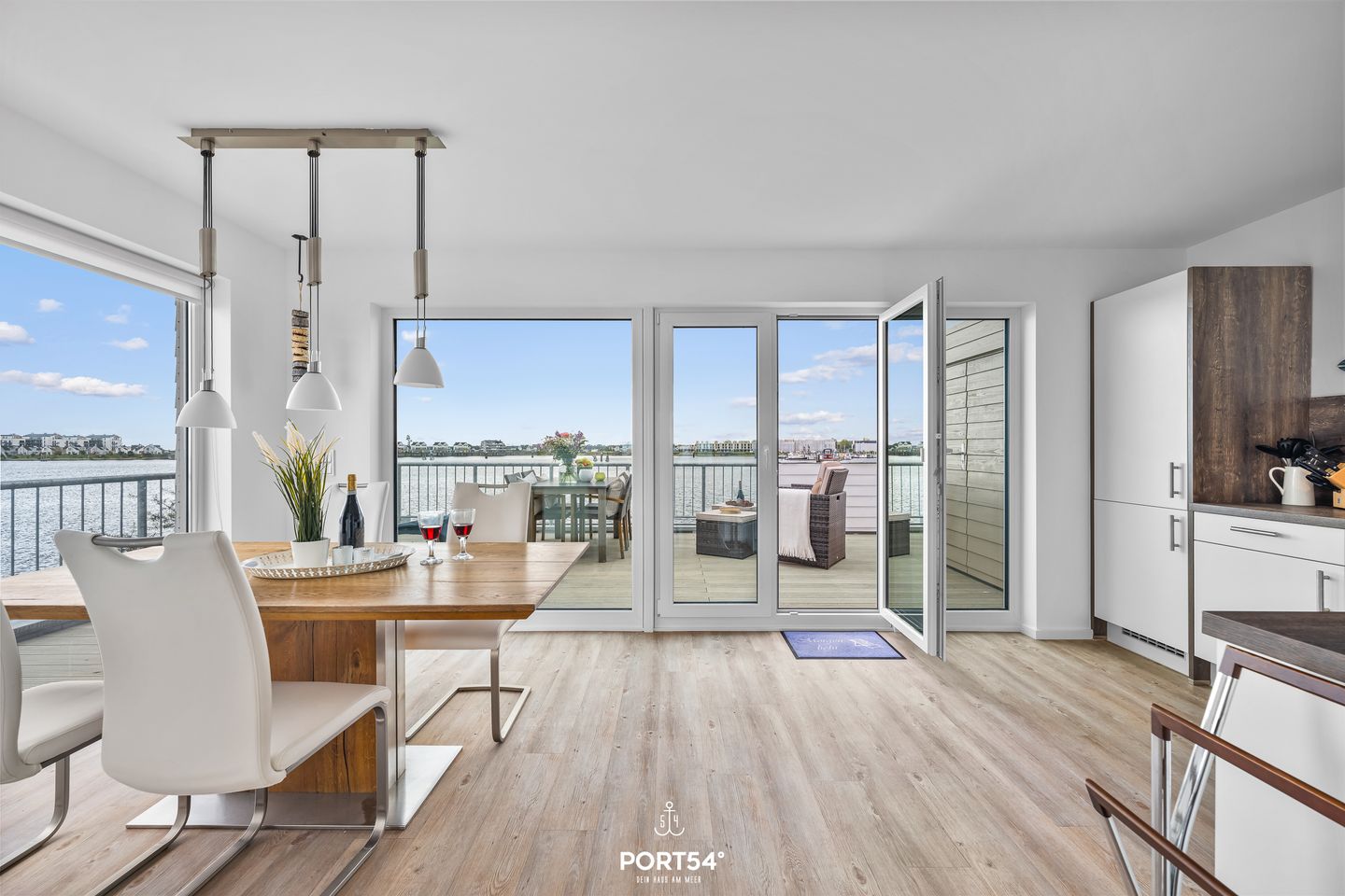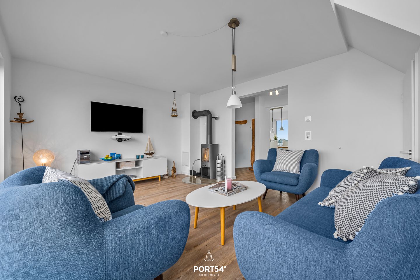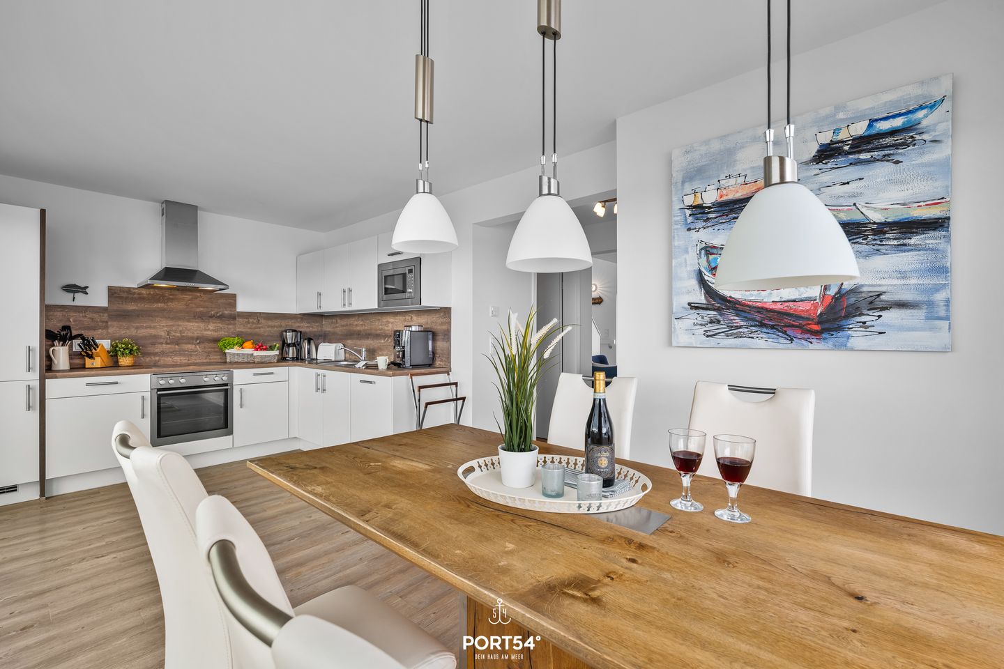 Herzlich willkommen in der Ferienwohnung "Morgenlicht" - hier erleben Sie nicht nur einen, sondern gleich zwei atemberaubende Aussichten mit einem fast 360-Grad-Wasserblick! Diese großzügige Wohnung erstreckt sich über zwei Etagen und bietet auf ca. 93m² zu jeder Jahreszeit den perfekten Ausgangspunkt für einen unvergesslichen Ostseeurlaub. Das erste Obergeschoss präsentiert einen lichtdurchfluteten Wohnbereich mit einem einladenden Kaminofen, perfekt für gemütliche Stunden. Hier finden Sie zudem ein modernes Duschbad vor. Die angrenzende und halboffene Küche mit Essbereich gewährt Ihnen den Zugang zur großzügigen Terrasse. Hier lassen sich laue Sommerabende, ausgestattet mit gemütlichen Gartenmöbeln, einem Strandkorb, einem Sonnenschirm sowie einem praktischen Elektro-Grill, in vollen Zügen genießen. Im zweiten Obergeschoss erwarten Sie zwei Schlafzimmer und ein weiteres Tageslichtbad. Ein Schlafzimmer ist mit einem TV und einem komfortablen Doppelbett (180x200cm) ausgestattet, während das andere mit einem Doppelbett (180x200cm) und einem Hochbett erholsame Nächte verspricht. Das große Bad besticht nicht nur durch eine Whirlwanne, sondern auch mit einer Infrarot-Sauna, die für ultimative Entspannung sorgt. Ob Erholung im Wellnessbad, geselliges Kochen in der vollausgestatteten Küche oder gemütliche Abende vor dem Kamin - im "Morgenlicht" findet jeder sein persönliches Wohlfühlplätzchen. Für die kleinsten Gäste stehen ein Kinderreisebett und ein Hochstuhl bereit. Auch Ihre vierbeinigen Begleiter sind gegen eine Gebühr herzlich willkommen, damit auch sie die Ostsee in vollen Zügen genießen können. Ein weiteres Highlight für Gäste der Wohnung "Morgenlicht": Sie können kostenfrei den Kurzplatz des Golf Clubs Stenerberg nutzen. Sprechen Sie uns gerne an. Der kostenfreie PKW-Stellplatz direkt vor dem Haus ermöglicht eine bequeme Anreise und Abreise.