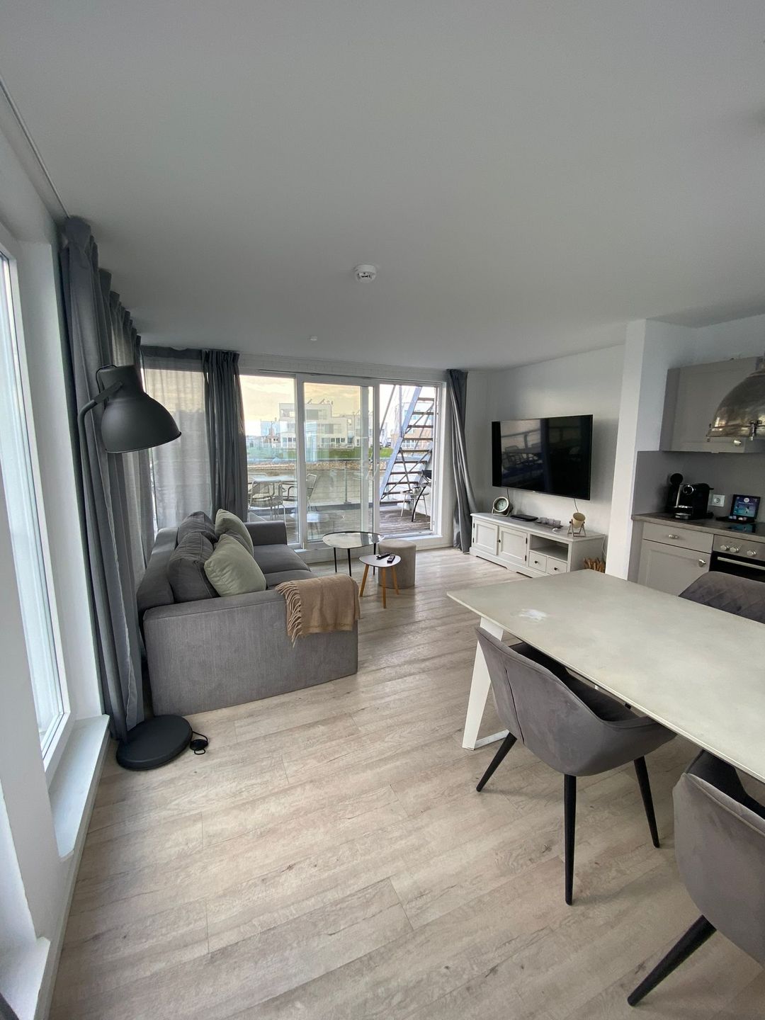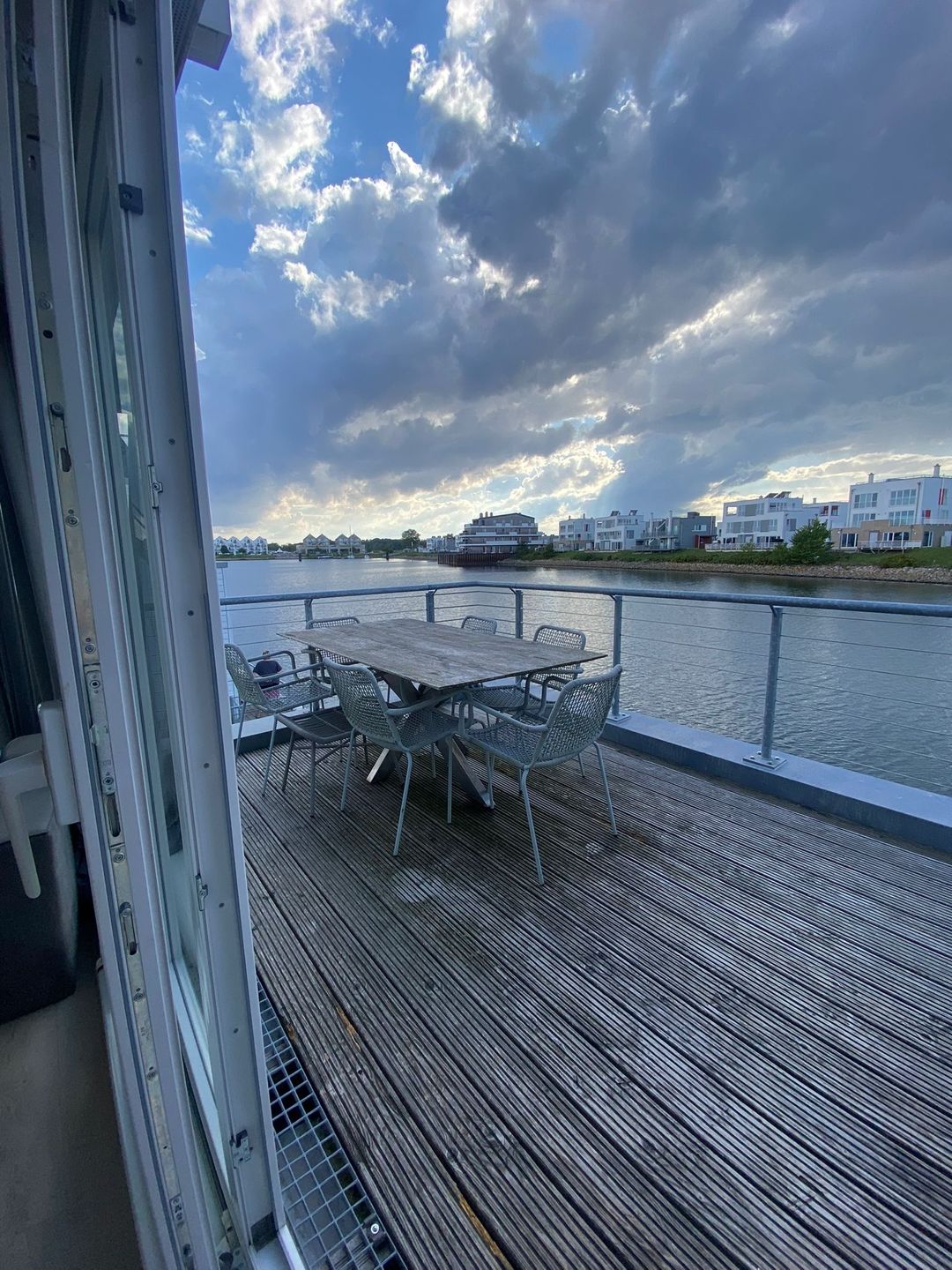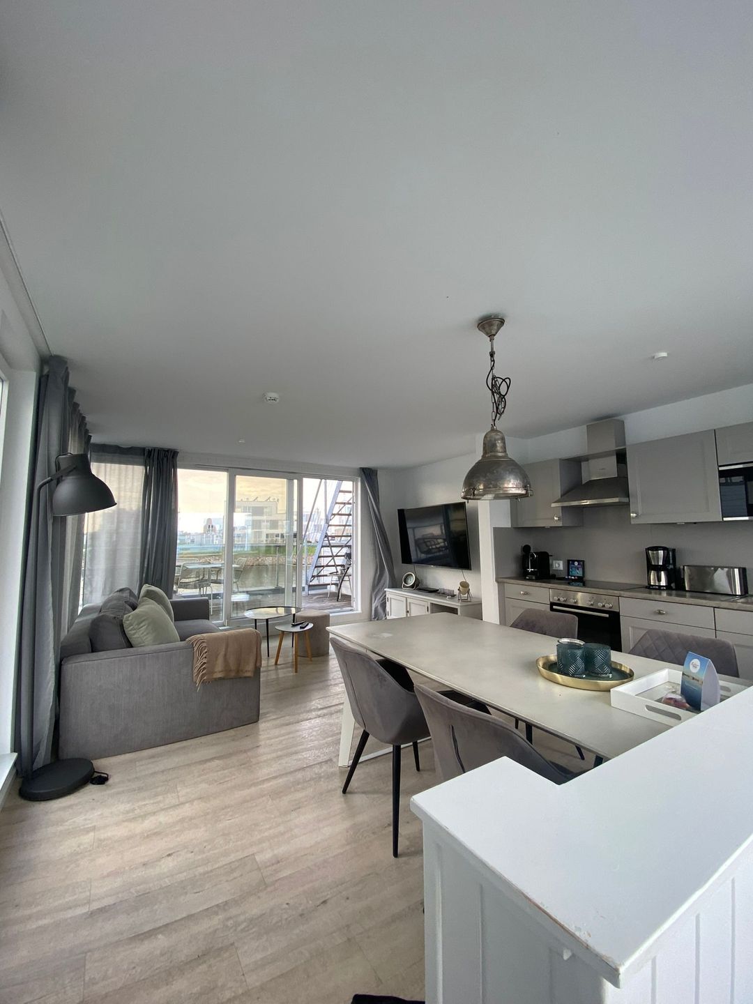 Auf der Terrasse oder dem Balkon genießt Du einen fantastischen Meerblick, der fast an das Sonnendeck eines Bootes erinnert. Die Dachterrasse mit ihrer runden Sonneninsel lädt zum Sonnenbaden, Lesen oder einfach zum Entspannen mit Blick auf das Wasser ein.