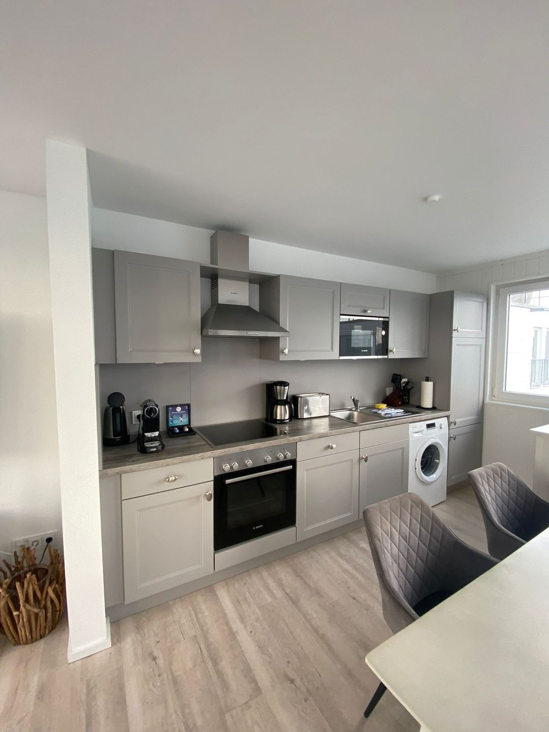 Ergänzt wird das Raumangebot durch ein modernes Badezimmer sowie einen offenen Wohn-, Ess- und Küchenbereich, der zum gemeinsamen Verweilen einlädt. Die voll ausgestattete Küche lässt keine Wünsche offen – vom Cerankochfeld bis zur Kaffeemaschine ist alles vorhanden, um Deinen Urlaub kulinarisch ganz nach Deinem Geschmack zu gestalten.