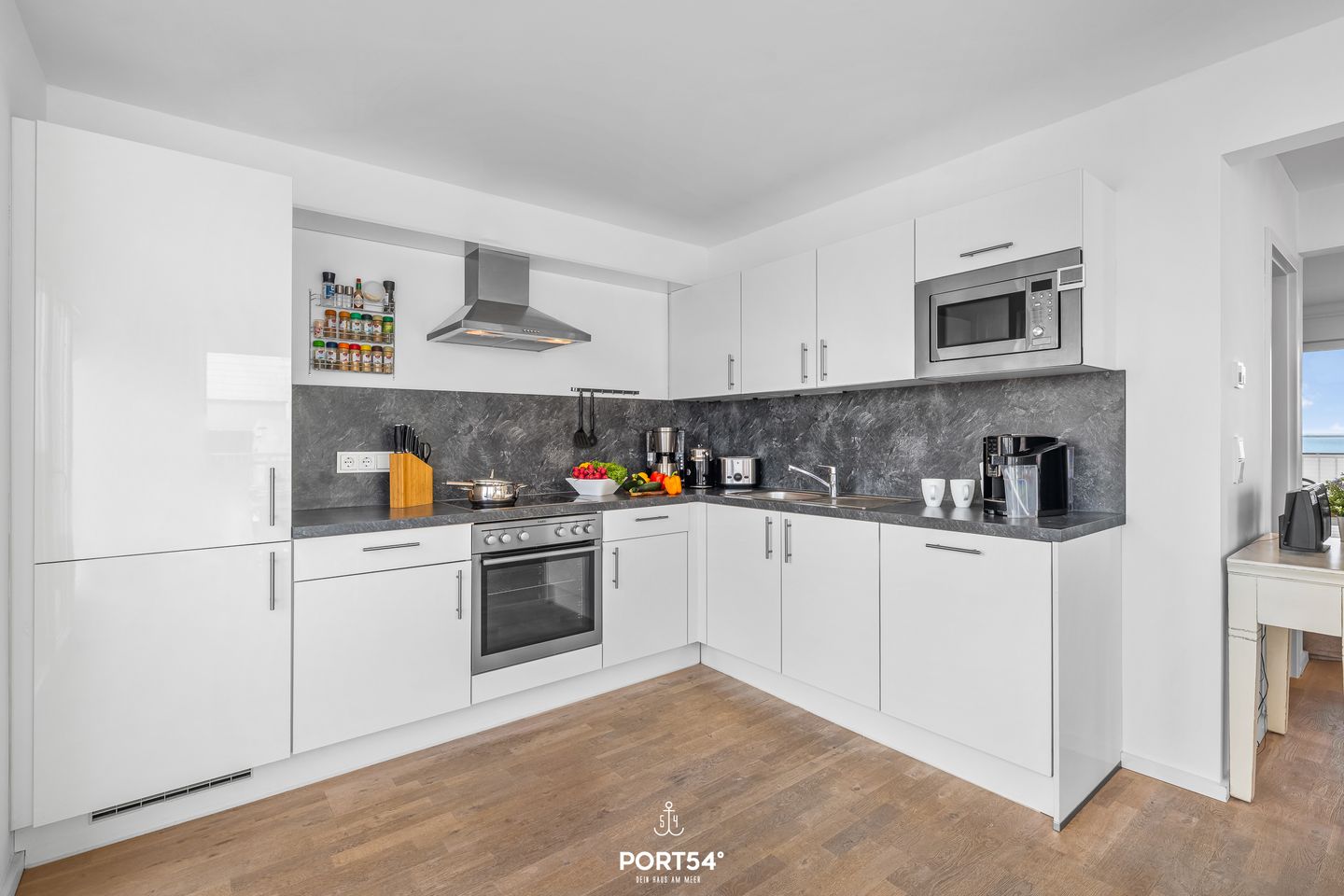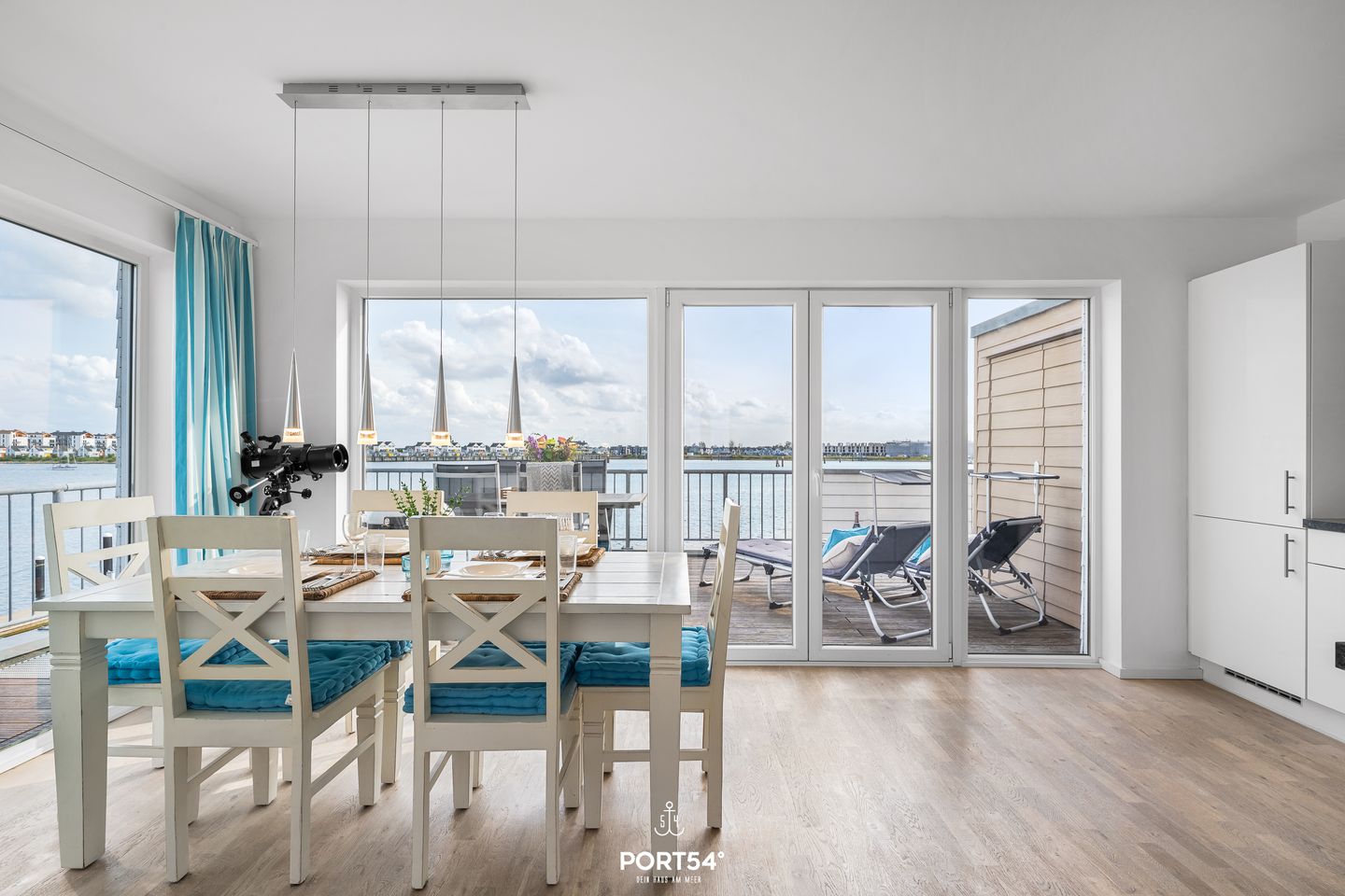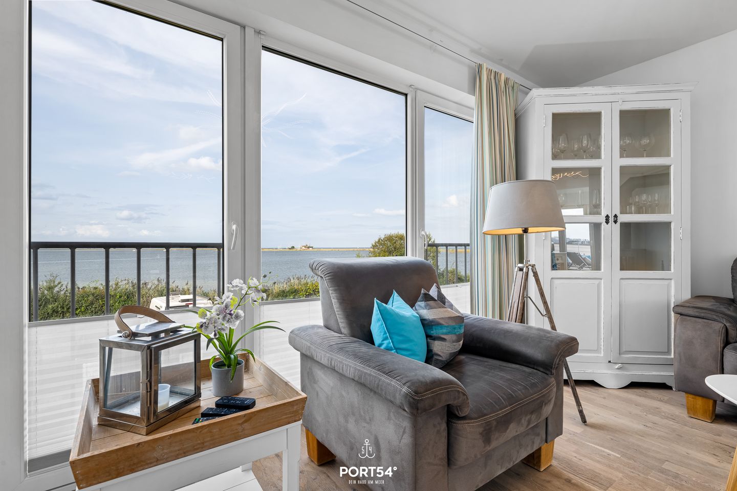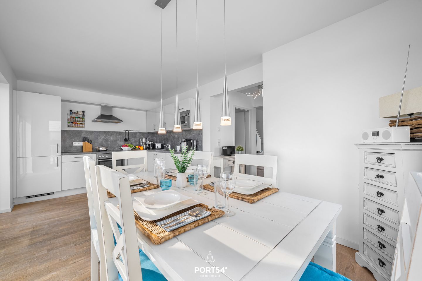 Der großzügige Wohn- und Essbereich bildet den Mittelpunkt der Wohnung. Ein Kaminofen sowie die Fußbodenheizung in der gesamten Wohnung sorgen auch an kühleren Tagen für eine behagliche Atmosphäre. Große Fenster lassen viel Tageslicht herein und eröffnen Dir einen angenehmen Blick auf das Wasser. Für Unterhaltung stehen Dir ein Fernseher, ein Radio sowie Spiele und Bücher zur Verfügung.