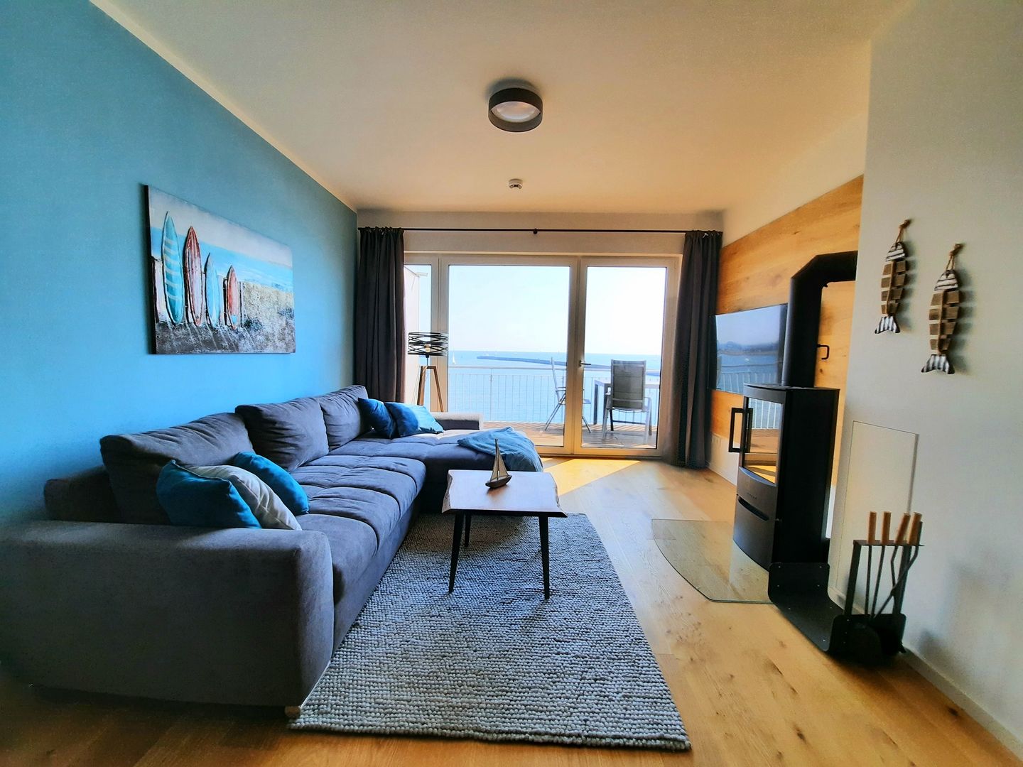 Die Ferienwohnung "HochSee" in Olpenitz, empfängt Sie mit einer außergewöhnlichen Kombination aus Komfort, moderner Ausstattung und einer beeindruckenden Lage im OstseeResort Olpenitz. Das großzügige Appartement im dritten Stock bietet auf 83 m² Platz für bis zu 5 Personen für einen entspannten Urlaub und richtet sich an Familien, Freunde und Paare, die Wert auf hohen Komfort und stilvolles Ambiente legen. Das Herzstück der Wohnung ist der offen gestaltete Wohn- und Essbereich, der mit seinem eleganten Design und dem Kaminofen für ein behagliches Raumgefühl sorgt. Große Fenster lassen viel Tageslicht in den Raum und bieten Ihnen einen tollen Meerblick, der zu jeder Tageszeit für ein besonderes Wohlfühlerlebnis sorgt. Für Unterhaltung sorgt hier der Smart-TV, Spiele und WLAN in der gesamten Unterkunft. Der Essbereich ist mit einem hochwertigen Esstisch ausgestattet und durch die moderne, offene Küche nahtlos integriert. Hier finden Sie sämtliche Annehmlichkeiten: Mikrowelle, Spülmaschine, Espresso- und Kaffeemaschine, Wasserkocher, Toaster und weiteres Kücheninventar stehen zur Verfügung, ebenso wie ausreichend Geschirr und Besteck sowie ein Mixer. Für die ersten Tage ist eine Erstausstattung mit Verbrauchsgütern gegeben. Die Wohnung verfügt über zwei separate Schlafzimmer. In einem der Schlafzimmer finden Sie ein Doppel-Boxspringbett (200x200cm) in dem anderen zwei Einzelbetten (100x200cm). Beide Schlafzimmer verfügen über einen Kleiderschrank, Verdunkelungsmöglichkeiten und ein je einen Smart-TV. Hier kommen Sie in den Genuss von viel Privatsphäre und individuell gestaltetem Schlafkomfort. Der fünfte Schlafplatz befindet sich auf dem gemütlichen Sofa im Wohnbereich. Für die jüngsten Gäste stehen sowohl ein Babybett als auch ein Kinderhochstuhl zur Verfügung. Das Badezimmer bietet eine bodengleiche Dusche, Fenster und Kosmetikspiegel sowie einen Haartrockner. Ein besonderes Highlight bildet die private Infrarotkabine. So genießen Sie entspannende Wellness-Momente in gemütlicher Atmosphäre. Die Wohnung ist zudem mit einer Waschmaschine, Bügeleisen, Bügelbrett, Ganzkörperspiegel, Wäscheständer und einer Garderobe ausgestattet, was längere Aufenthalte äußerst komfortabel macht. Ein großzügiger, möblierter Balkon eröffnet Ihnen nicht nur den Ausblick auf das Meer, sondern lädt auch dazu ein, die frische Meeresbrise und die besondere Lage zu genießen. Zur weiteren Ausstattung zählen die Fußbodenheizung sowie Sichtschutz für alle Fenster. Ein Privatparkplatz direkt vor der Unterkunft sowie ein Aufzug im Haus gewährleisten einen komfortablen Zugang zur Ferienwohnung. Neben der unmittelbaren Nähe zum Meer profitieren Sie in Olpenitz von zahlreichen Freizeitmöglichkeiten und Ausflugszielen in der Umgebung. Die Region ist ideal für Sportbegeisterte: Sie können zum Beispiel Segeln, Angeln, Radfahren und diverse Wassersportarten betreiben. Für entspannte Urlaubstage sorgen Spielplätze und Wege zum Spazierengehen, Wandern oder Joggen. Einkaufsmöglichkeiten, Restaurants und weitere, touristische Angebote sind fußläufig oder mit dem Auto schnell erreichbar. Mit ihrer hochwertigen Ausstattung, der tollen Lage direkt am Meer und dem vielfältigen Freizeitangebot eignet sich die Ferienwohnung "HochSee" gleichermaßen für erholsame Familienurlaube wie für entspannte Auszeiten zu zweit. Sichern Sie sich Ihren Aufenthalt in diesem modernen und komfortablen Feriendomizil an der Ostseeküste.