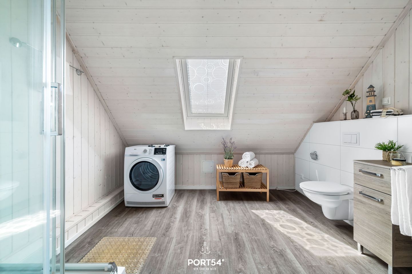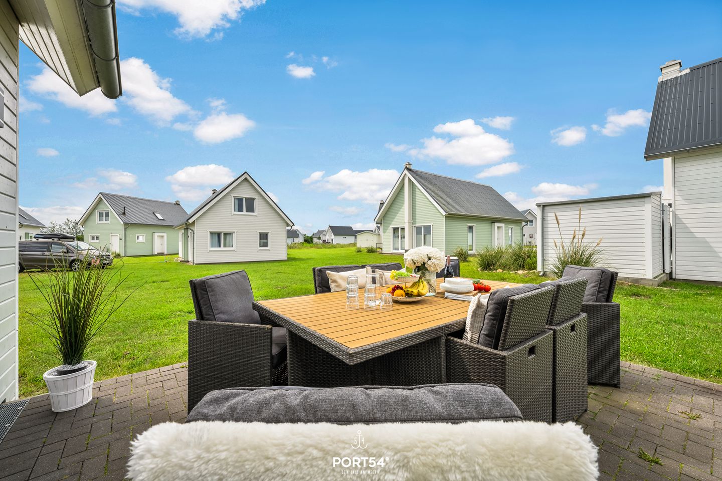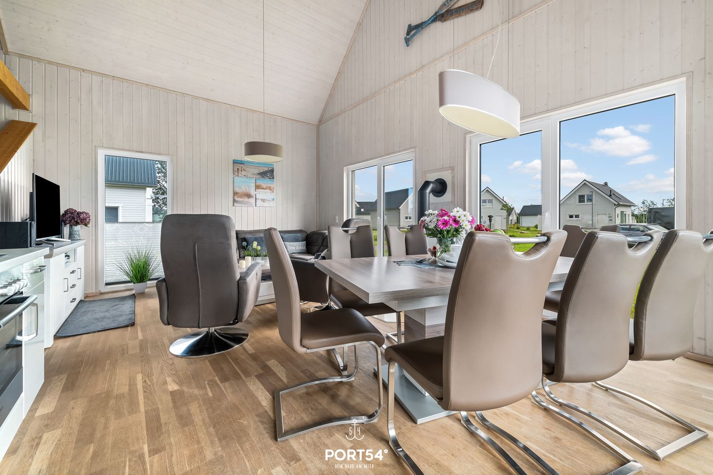 Willkommen in Ihrem Feriendomizil "Sanfte Brise" in Olpenitz. Im Erdgeschoss befindet sich der große, loftartig angelegte Wohn- und Essbereich, zwei Schlafzimmer sowie ein Badezimmer. Ein weiteres Bad und ein Schlafzimmer finden Sie im Obergeschoss. Die hohen Decken und die großen Fenster sorgen für besonders viel Lichteinfall und ein großzügiges Wohngefühl. Das 98m² große, freistehende Haus besticht durch seine Lage im Grünen und der unmittelbaren Nähe zur Ostsee. Nach langen Strandspaziergängen können Sie auf dem gemütlichen Sofa vor dem Kamin entspannen oder Ihre Lieblingsserie über den vorhandenen Blu-ray-Player auf dem Flachbild-TV schauen. Für die Kleinen stehen zwei Kinderreisebetten und zwei Kinderhochstühle bereit. Die voll ausgestattete Küche bietet alles, was Sie für einen geselligen Kochabend mit der Familie benötigen. Ein Schlafzimmer im Erdgeschoss ist mit einem Doppelbett (180x200cm) und einem Flachbild-TV ausgestattet, das andere verfügt über zwei Einzelbetten (je 90x200cm). Im dritten Schlafzimmer im Obergeschoss finden Sie ein Doppelbett (180x200cm), ein zusätzliches Schlafsofa (160x200cm) sowie einen Smart-TV. Für erholsame Nächte sind alle Schlafzimmer mit Verdunkelungsmöglichkeiten und Fliegengittern ausgestattet. Das Badezimmer im Erdgeschoss ist mit einer Badewanne, einem Handtuchheizkörper, einer Waschmaschine und dem Highlight, einer Infrarot-Sauna ausgestattet. Hier können Sie sich an kalten Tagen aufwärmen und entspannen. Das weitere Badezimmer im ersten Obergeschoss bietet eine Dusche, ebenfalls einen Handtuchheizkörper, einen Wäschetrockner und einen Föhn. An sonnigen Tagen können Sie es sich auf der möblierten Terrasse gemütlich machen. Auf den Sonnenliegen können Sie ihre Urlaubstage genießen und an lauen Sommerabenden mit der Familie die Tage auf der Terrasse ausklingen lassen. Das Ferienhaus ist für maximal sechs Erwachsene und zwei Kinder vorgesehen, da die Schlafsofas 160cm breit sind. Ihr vierbeiniger Freund kann gerne mitreisen. Für Ihre PKW stehen zwei Stellplätze vor dem Haus zur Verfügung.