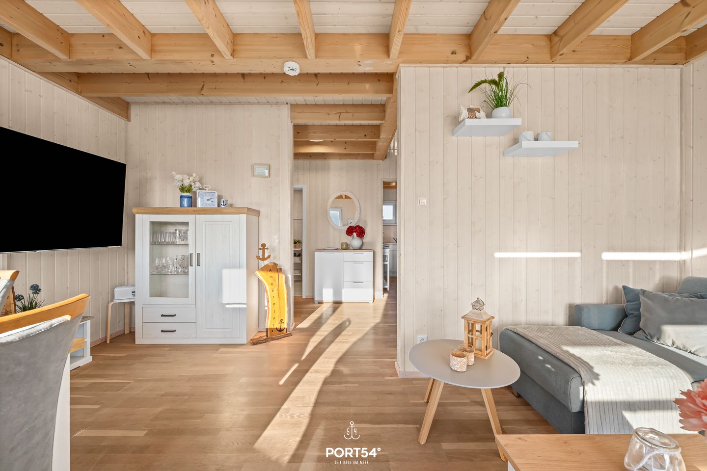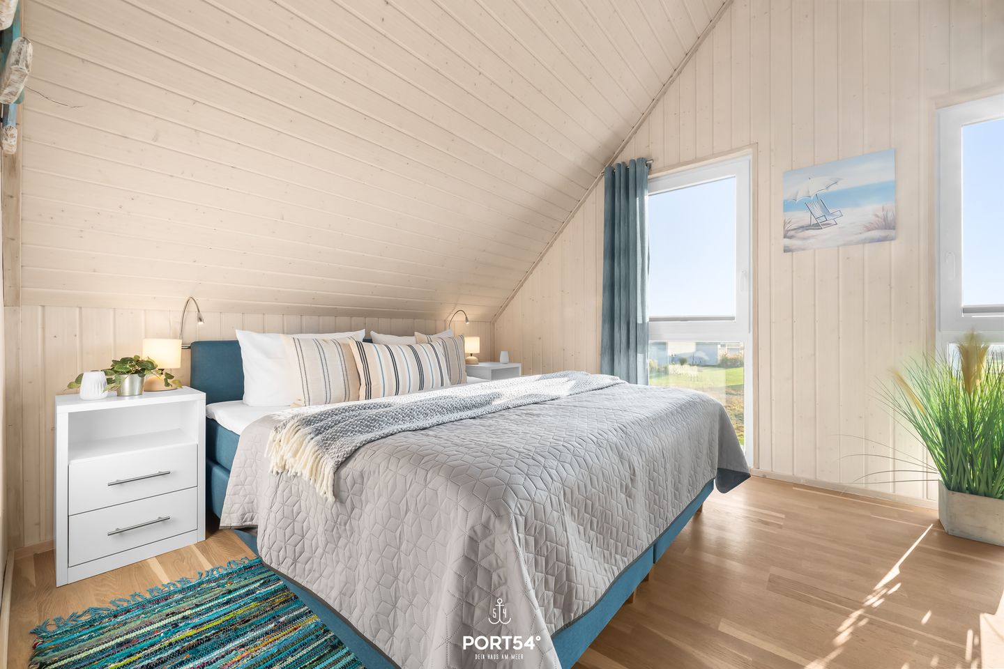 Willkommen im Haus "Frische Brise" in Olpenitz! Das Haus verfügt über einen offenen Wohn- und Essbereich, eine Küche, zwei Schlafzimmer und zwei Bäder. Nach langen Strandspaziergängen können Sie auf dem gemütlichen Sofa vor dem Kamin entspannen und Ihre Lieblingsserie auf dem Flachbild-TV schauen. Das Sofa kann zu einer Schlafcouch ausgezogen werden und eignet sich als Schlafmöglichkeit für ein Kind. Die Küche bietet alles, was Sie für einen geselligen Kochabend mit der Familie benötigen. Im ersten Obergeschoss befinden sich die zwei Schlafzimmer. Das eine ist mit einem Doppelbett (180x200cm) und einem Flachbild-TV ausgestattet, das andere verfügt über zwei Einzelbetten (je 90x200cm). Beide Schlafzimmer sind mit jeweils mit einem Kleiderschrank und Verdunkelungsmöglichkeiten ausgestattet. Für die kleinen Gäste steht ein Babybett und ein Kinderhochstuhl zur Verfügung. Ein Badezimmer befindet sich im Erdgeschoss und ist mit einer ebenerdigen Dusche und dem Highlight: einer Infrarot-Sauna ausgestattet. Hier können Sie sich an kalten Tagen aufwärmen und entspannen! Das andere Badezimmer befindet sich im Obergeschoss bietet eine Duschwanne und einen Föhn. An sonnigen Tagen können Sie es sich auf der möblierten Terrasse gemütlich machen! Die Sonnenliegen laden zum relaxen ein und an lauen Sommerabenden können Sie die Tage auf der Terrasse ausklingen lassen. Das Ferienhaus ist für maximal vier Erwachsene und ein Kind vorgesehen. Ihre Fellnasen können Sie gerne mitbringen! Für Ihre PKWs stehen zwei Stellplätze vor dem Haus zur Verfügung. Im abschließbaren Fahrradschuppen können Sie Ihre mitgebrachten oder bei uns geliehenen Fahrräder unterstellen.