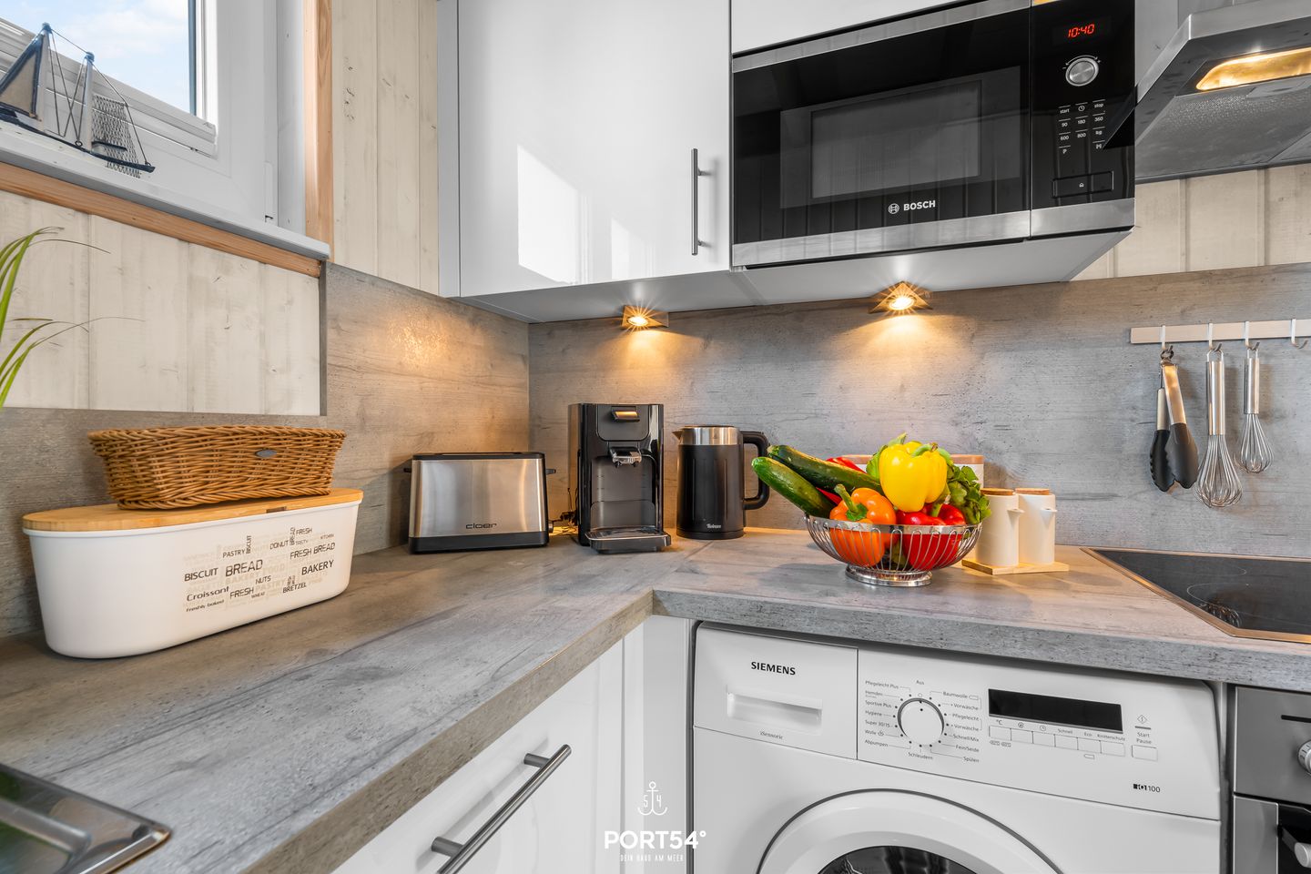Herzlich Willkommen im Ferienhaus "Meer und Mehr I". Ihr freistehendes Ferienhaus besticht durch seine Lage, umgeben von einer grünen Wiese in unmittelbarer Nähe zur Ostsee und dem Yachthafen. Das Domizil bietet auf über 80m² einen offenen Wohn- und Essbereich mit Küche, zwei Schlafzimmer, zwei Badezimmer und eine Terrasse. Große Panoramafenster sorgen für eine lichtdurchflutete Wohlfühlatmosphäre. Entspannen Sie auf dem Sofa vor dem Flachbild-TV oder lassen Sie Ihre Urlaubstage auf der Terrasse ausklingen. An den kühleren Tagen sorgt der Kaminofen im Wohnbereich für eine gemütliche Wärme. Zu Ihrer Sicherheit ist das Haus mit einem Kohlenmonoxid Melder ausgestattet. Um gesellige Abende zu verbringen, stehen Ihnen Bücher, Gesellschaftsspiele, Blu-ray Discs, DVDs und CDs zur Verfügung. Ein Schlafsofa (140x200cm) bietet 2 Kindern eine zusätzliche Schlafmöglichkeit. Die modern eingerichtete Küche lässt keine Wünsche offen. Sie finden hier alles, um sich und Ihre Mitreisenden kulinarisch verwöhnen zu können. Das Bad im Erdgeschoss verfügt über ein Fenster mit Sichtschutz, einem WC, einer Dusche und als Highlight, eine Infrarotkabine. Hier können Sie es sich nach langen Strandspaziergängen gut gehen lassen. Im Obergeschoss befinden sich zwei Schlafzimmer, die beide u. a. mit Kleiderschränken und Boxspringbetten ausgestattet sind, eins mit einem Doppelbett (180x200cm), das andere mit 2 zusammengeschobenen Einzelbetten (100x200cm). Ein Kinderhochstuhl sowie ein Kinderreisebett mit Matratze finden Sie ebenfalls im Haus. Ein weiteres Wannenbad mit Fenster mit Sichtschutz runden das Obergeschoss ab. Beide Bäder verfügen über einen Handtuchheizkörper. Die Terrasse ist ausgestattet mit Terrassenmöbeln, 2 Sonnenliegen, einem Strandkorb und einem hochwertigen Weber Elektrogrill. Ihre Fahrräder können Sie sicher in einem Fahrradschuppen unterbringen. Hier finden Sie auch noch einen Bollerwagen, den Sie für Strandausflüge nutzen können. Vor dem Haus stehen Ihnen 2 Parkplätze zur Verfügung. Das Haus ist maximal für 4 Erwachsene und 2 Kinder geeignet. Direkt nebenan erwartet Sie das baugleiche Schwesterhaus „Meer & Mehr II“. Ideal für unvergessliche Urlaubstage mit der Großfamilie oder engen Freunden – genießen Sie gemeinsame Erlebnisse und gleichzeitig die Rückzugsmöglichkeiten für entspannte Momente der Privatsphäre.