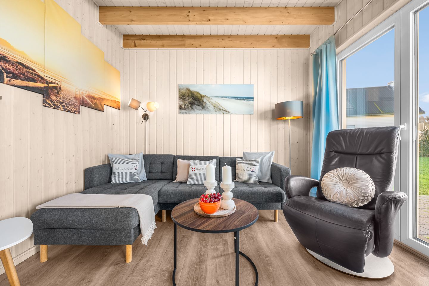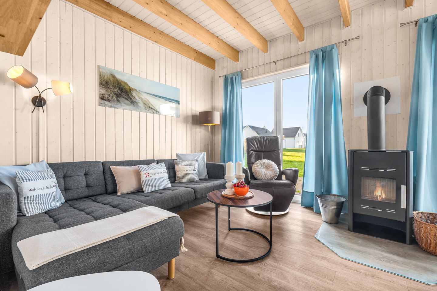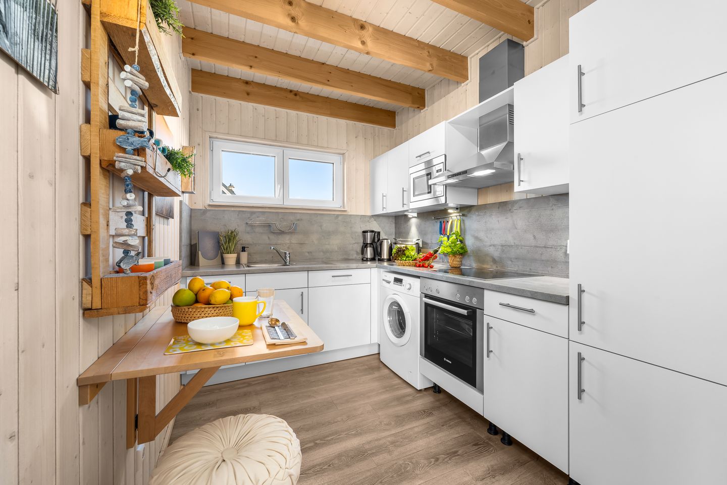 Willkommen im Haus "Trolljenta" im OstseeResort Olpenitz! Machen Sie Urlaub an der Ostsee! Das Ferienhaus bietet auf 80m² einen offenen Wohn- und Essbereich mit Küche, zwei Schlafzimmer, zwei Badezimmer und eine Terrasse. Entspannen Sie auf dem Sofa vor dem Flachbild-TV oder lassen Sie Ihre Urlaubstage auf der Terrasse ausklingen. Das Sofa kann zu einer Schlafcouch ausgezogen werden und eignet sich als Schlafmöglichkeit für ein Kind. An den kühleren Tagen sorgt der Kaminofen im Wohnbereich für eine gemütliche Wärme. In der vollausgestatteten Küche lassen sich leckere Gerichte zaubern. Für unsere kleinen Gäste gibt es einen Kinderhochstuhl und ein Reisebett. Das eine Schlafzimmer bietet ein Doppelbett (180x200cm) und das andere Schlafzimmer drei Einzelbetten (je 90x200cm). In beiden Schlafzimmern befinden Sich jeweils ein Kleiderschrank und Verdunkelungsmöglichkeiten. Ein Schlafzimmer ist zusätzlich mit einem Flachbild-TV ausgestattet. In den Bädern finden Sie eine Dusche, eine Badewanne und einen Föhn vor. Das Duschbad bietet Ihnen das Highlight des Hauses: eine Infrarot-Sauna. Die Terrasse bietet neben Gartenmöbeln einen Sonnenschirm, sowie einen Holzkohlegrill. Gemütlichen Grillabenden an lauen Sommertagen steht somit nichts im Wege! Das Ferienhaus ist für maximal fünf Erwachsene und ein Kind vorgesehen. Ein Außenstellplatz und ein abschließbarer Fahrradschuppen sind vor dem Haus vorhanden.