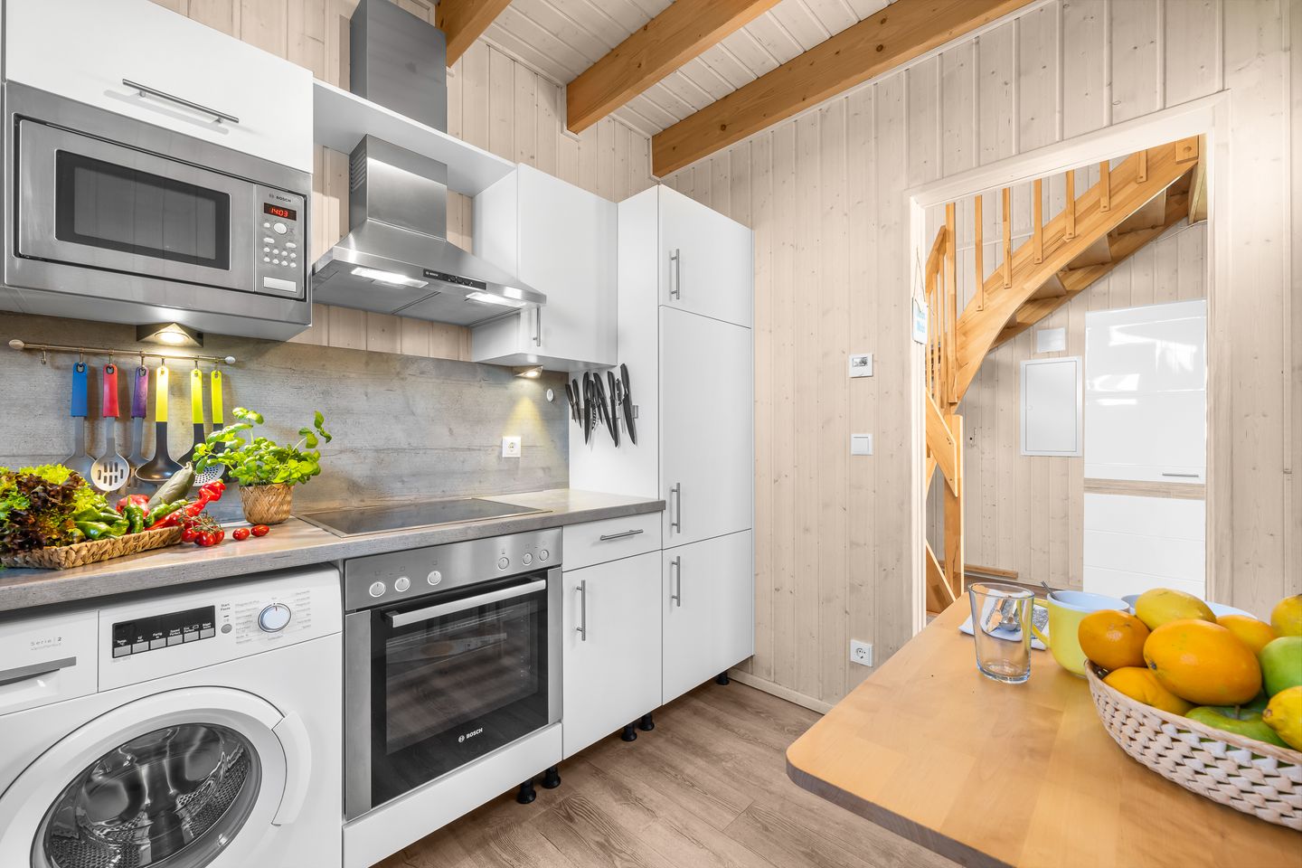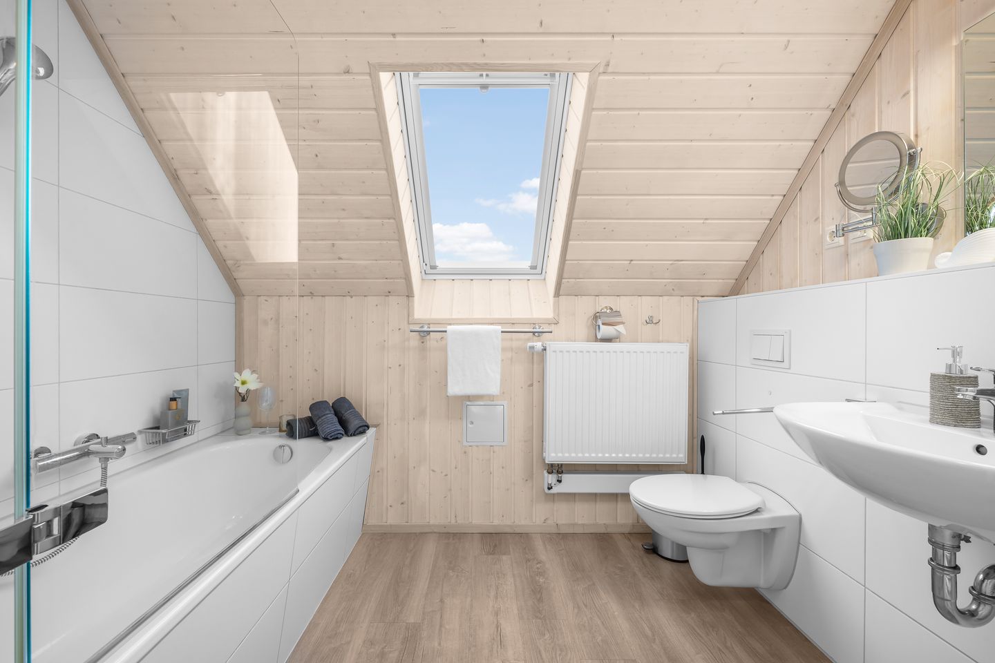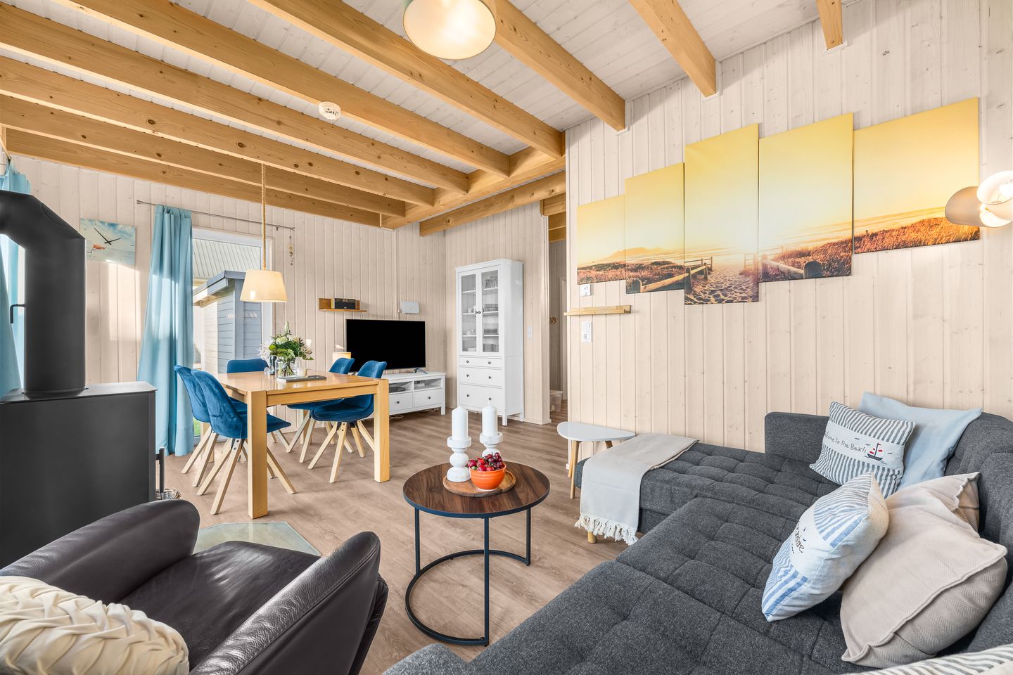 Willkommen im Haus "Trolljenta" im OstseeResort Olpenitz! Machen Sie Urlaub an der Ostsee! Das Ferienhaus bietet auf 80m² einen offenen Wohn- und Essbereich mit Küche, zwei Schlafzimmer, zwei Badezimmer und eine Terrasse. Entspannen Sie auf dem Sofa vor dem Flachbild-TV oder lassen Sie Ihre Urlaubstage auf der Terrasse ausklingen. Das Sofa kann zu einer Schlafcouch ausgezogen werden und eignet sich als Schlafmöglichkeit für ein Kind. An den kühleren Tagen sorgt der Kaminofen im Wohnbereich für eine gemütliche Wärme. In der vollausgestatteten Küche lassen sich leckere Gerichte zaubern. Für unsere kleinen Gäste gibt es einen Kinderhochstuhl und ein Reisebett. Das eine Schlafzimmer bietet ein Doppelbett (180x200cm) und das andere Schlafzimmer drei Einzelbetten (je 90x200cm). In beiden Schlafzimmern befinden Sich jeweils ein Kleiderschrank und Verdunkelungsmöglichkeiten. Ein Schlafzimmer ist zusätzlich mit einem Flachbild-TV ausgestattet. In den Bädern finden Sie eine Dusche, eine Badewanne und einen Föhn vor. Das Duschbad bietet Ihnen das Highlight des Hauses: eine Infrarot-Sauna. Die Terrasse bietet neben Gartenmöbeln einen Sonnenschirm, sowie einen Holzkohlegrill. Gemütlichen Grillabenden an lauen Sommertagen steht somit nichts im Wege! Das Ferienhaus ist für maximal fünf Erwachsene und ein Kind vorgesehen. Ein Außenstellplatz und ein abschließbarer Fahrradschuppen sind vor dem Haus vorhanden.