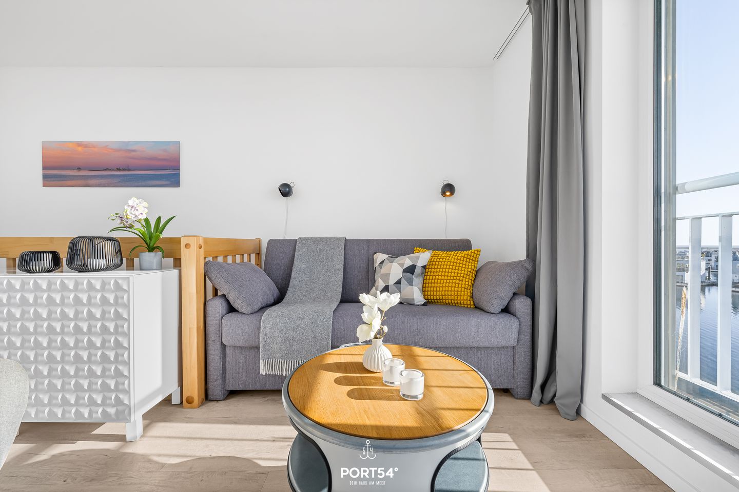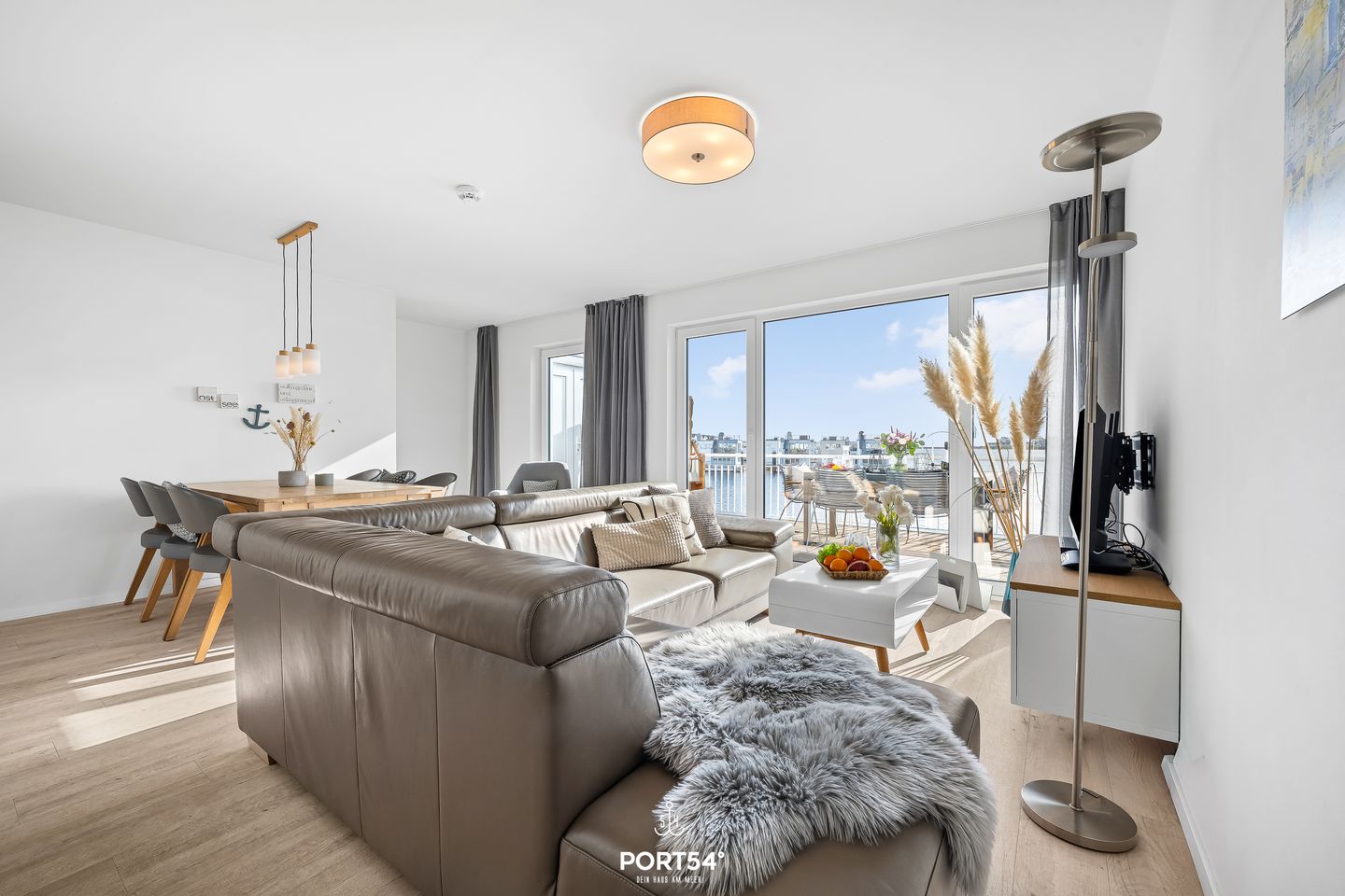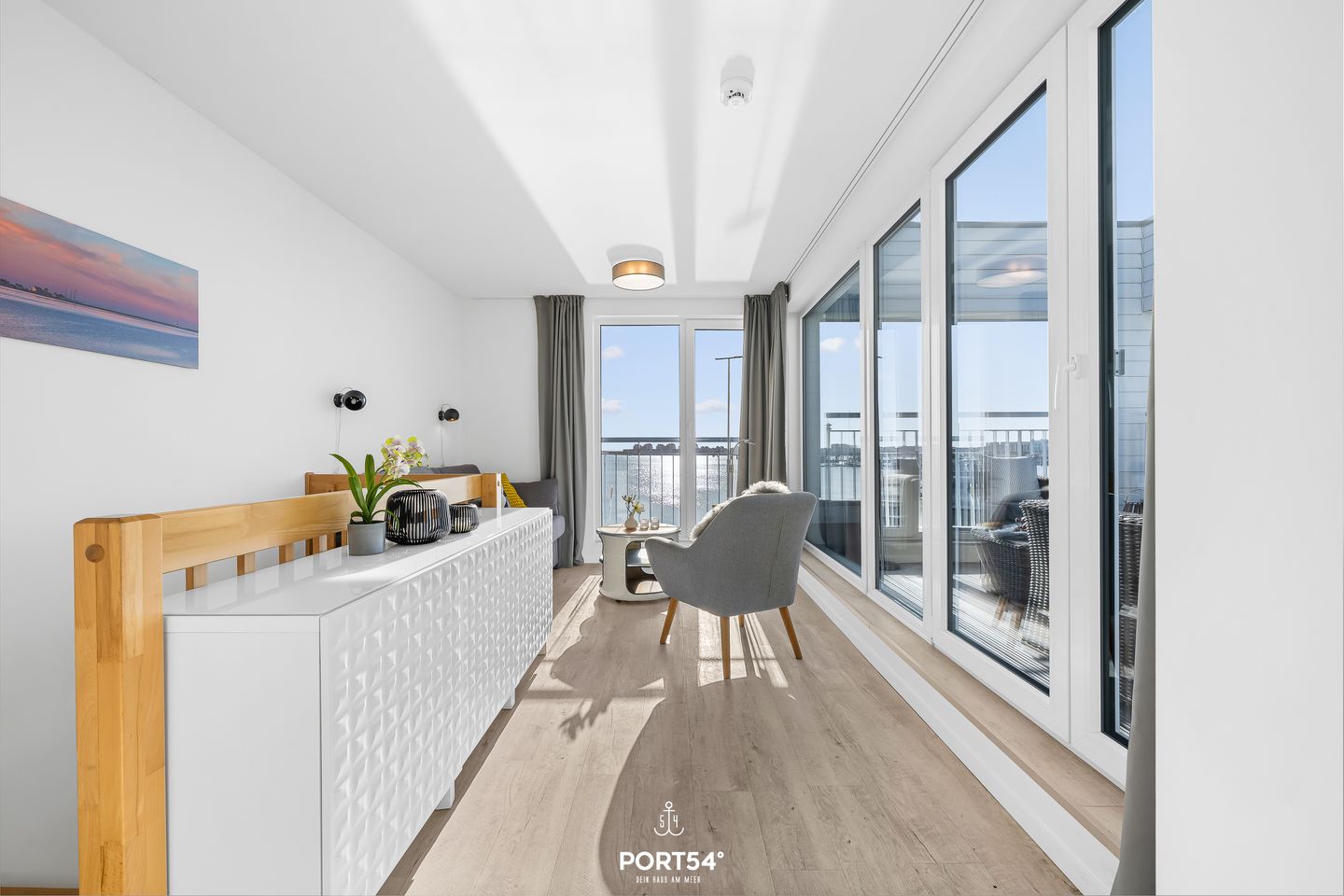 Das Ferienhaus „Süd-See-Seite“ lässt auf ca. 127 m² keine Wünsche offen. Der modern und stilvoll eingerichtete Wohn- und Essbereich lädt Dich zum Verweilen ein und bietet Dir durch bodentiefe Fenster einen wunderschönen Blick auf den Hafen. Von hier aus gelangst Du auf die großzügige Terrasse, auf der Du hervorragend Dein Frühstück genießen kannst.