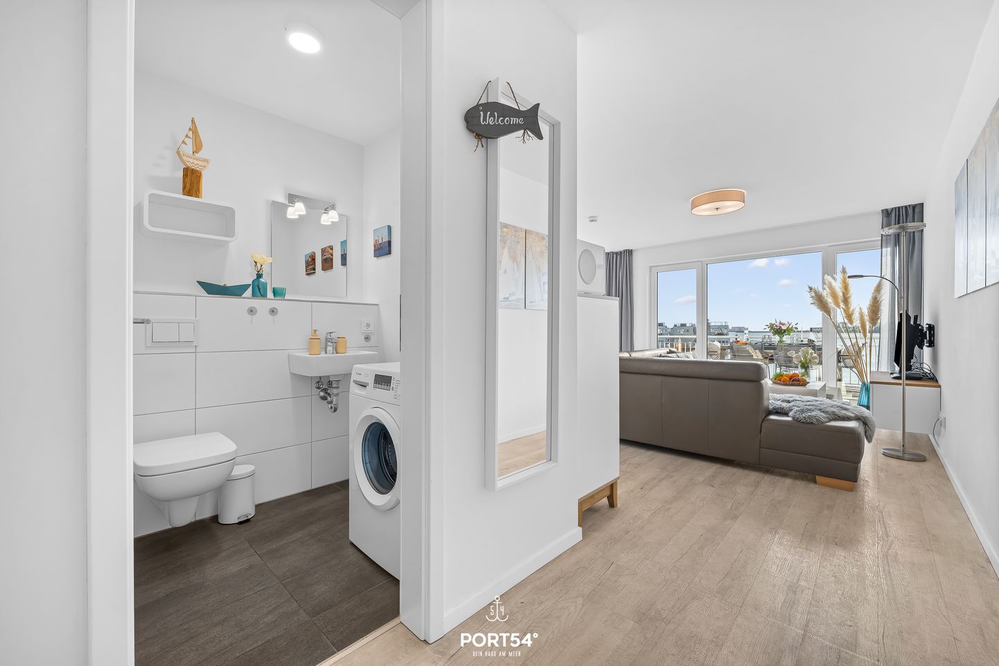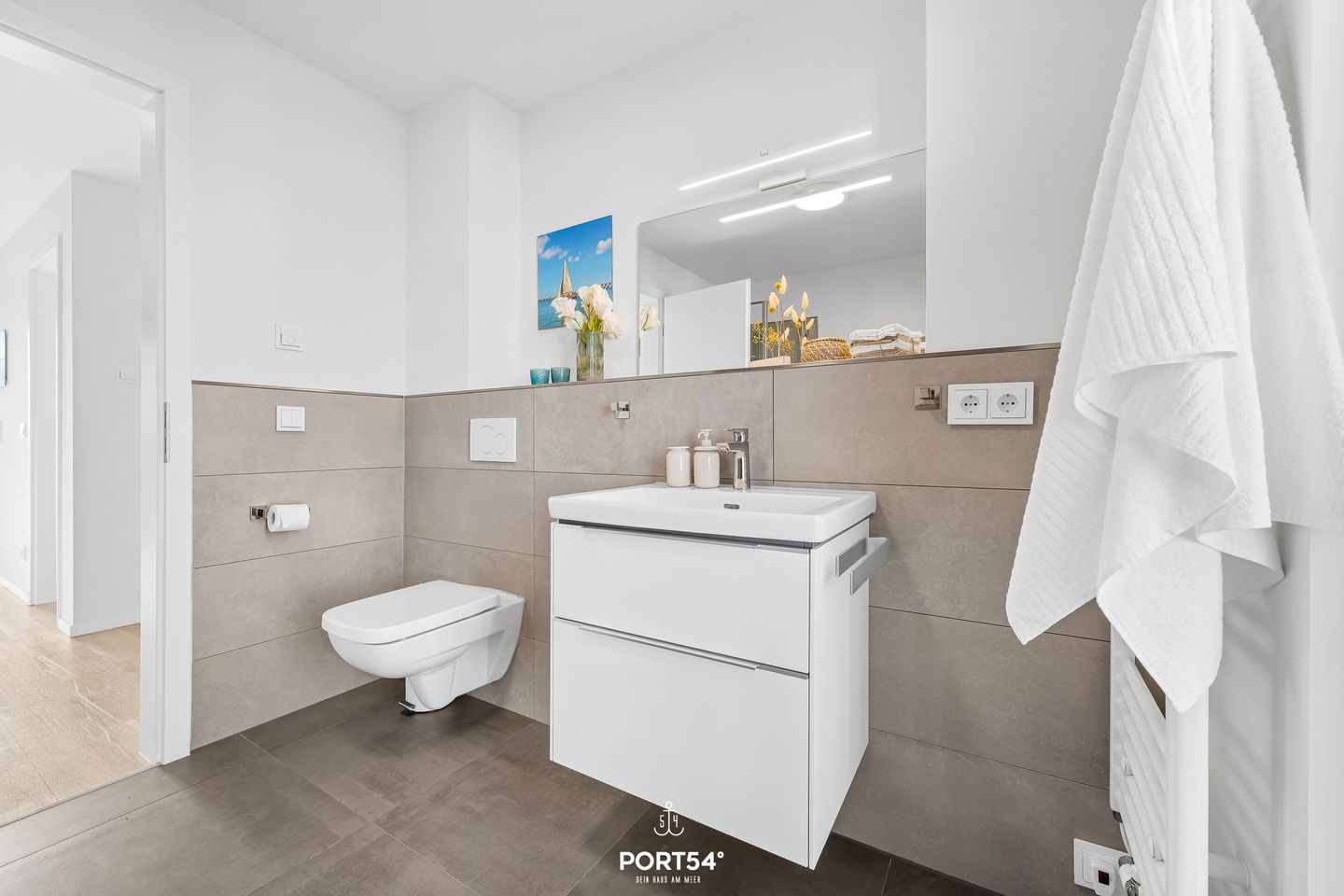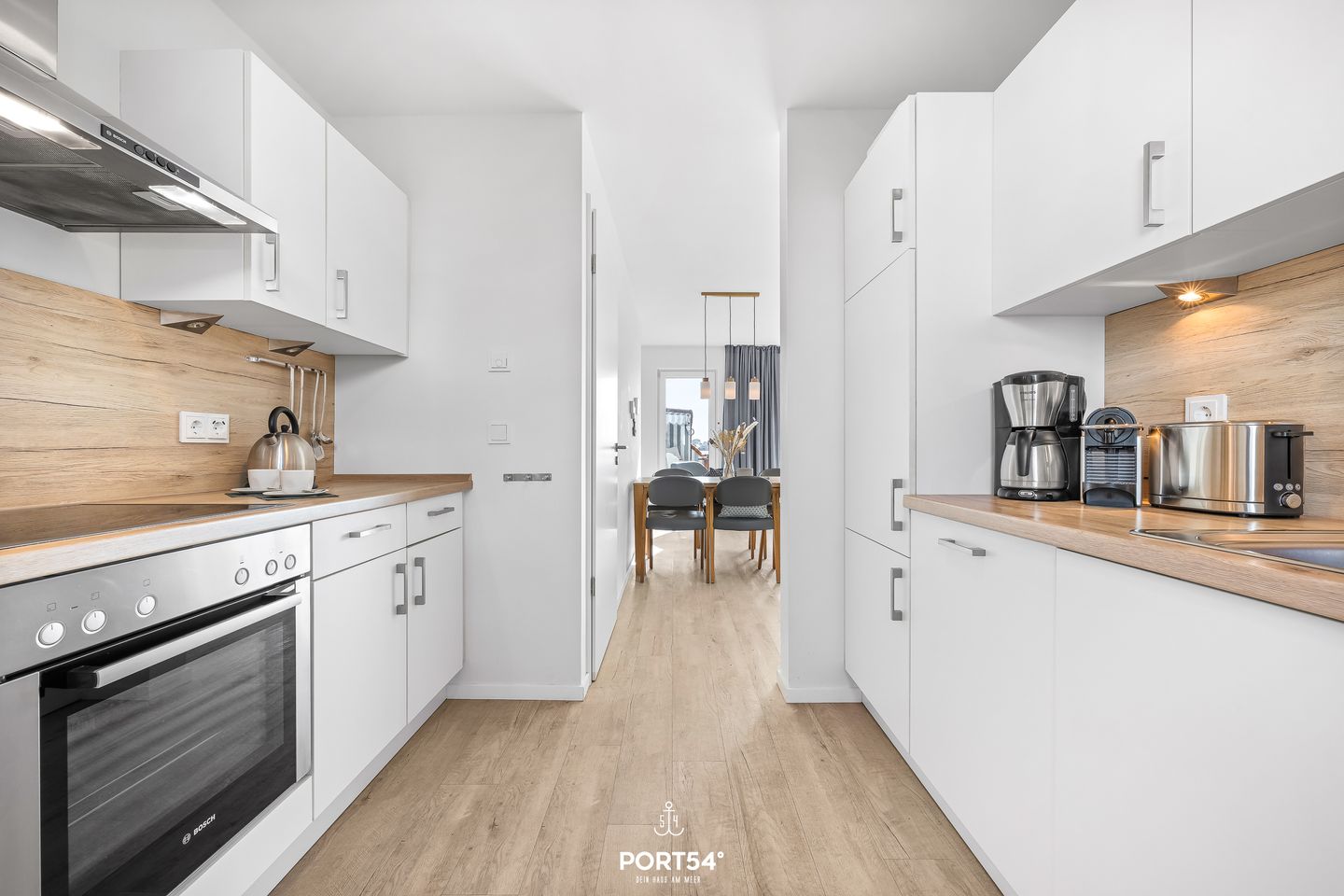 Das Ferienhaus „Süd-See-Seite“ lässt auf ca. 127 m² keine Wünsche offen. Der modern und stilvoll eingerichtete Wohn- und Essbereich lädt Dich zum Verweilen ein und bietet Dir durch bodentiefe Fenster einen wunderschönen Blick auf den Hafen. Von hier aus gelangst Du auf die großzügige Terrasse, auf der Du hervorragend Dein Frühstück genießen kannst.