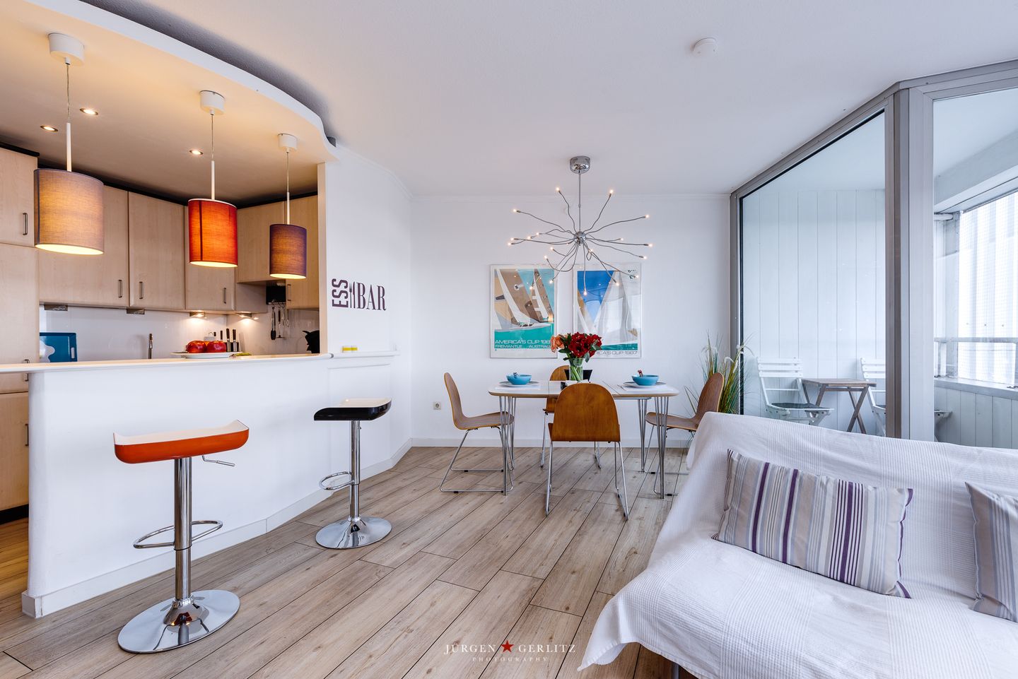 Willkommen in unserem einzigartigen Apartment „Schleiverliebt 19.8“ im imposanten Wikingturm! Im 19. Stock dieses auffälligen Wahrzeichens inmitten der Schlei bietet diese Wohnung auf großzügigen 63m² Platz für bis zu 4 Personen und eröffnet eine atemberaubende Aussicht auf das Wikingerland rund um Haithabu sowie auf die malerische Schlei. Das Apartment besticht durch einen modernen und offenen Wohnraum, der eine voll ausgestattete Küche, einen gemütlichen Essbereich und einladende Sitzgelegenheiten umfasst. Der separate Schlafbereich ist mit einem komfortablen Doppelbett (180x200cm) ausgestattet, um eine erholsame Nachtruhe zu gewährleisten. Das Sofa im Wohnzimmer bietet dank der Schlaffunktion zwei weitere Personen Platz. Das Badezimmer punktet mit einer Dusche. Ein besonderes Highlight ist der an das Wohnzimmer angeschlossene Balkon, von dem Sie einen unvergesslichen Ausblick haben und morgens an der frischen Luft Ihren Morgenkaffee genießen können. Ein PKW-Stellplatz befindet sich in einer fußläufig erreichbaren Garage, die mit einer Chipkarte zugänglich ist. Im Inneren des Turms stehen Ihnen drei Fahrstühle zur Verfügung, wobei der größte direkt zum Cafe mit Bar in der 26. Etage führt. Der Zugang zum Foyer mit den beiden weiteren Fahrstühlen ist nur mit einem zentralen Schlüssel möglich. Die Bedienung der Fahrstühle erfordert ebenfalls diesen Schlüssel, um sicherzustellen, dass Unbefugte keinen Zugang zum Turm haben.