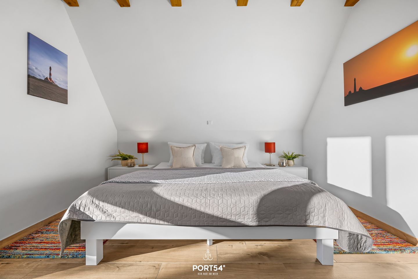 Die Nordsee mit ihrem berühmten Sandstrand erreichen Sie nach etwa 1,5 Kilometern bequem zu Fuß, per Fahrrad oder mit dem Auto. Die Lage ist ideal für Badeurlauber, Wassersportbegeisterte, Radfahrer und Wanderfreunde. Das Ferienhaus eignet sich für einen aktiven Urlaub mit vielfältigen Möglichkeiten wie Angeln, Segeln, Beachvolleyball, Reiten, Nordic Walking, Joggen oder Windsurfen. Auch kulturell Interessierte kommen auf ihre Kosten: Museen und Kirchen bieten abwechslungsreiche Unterhaltung. In unmittelbarer Nähe finden Sie zudem eine gute Auswahl an Restaurants, den Bahnhof sowie zahlreiche Freizeit- und Wellnessangebote.