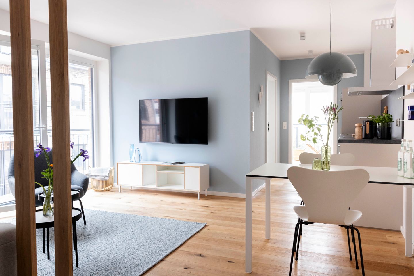 Der offene Wohn-& Essbereich besticht durch ein helles, freundliches Raumkonzept. Auf dem Sofa können Sie es sich abends gemütlich machen und einfach mal vor dem Smart-TV zurück lehnen.