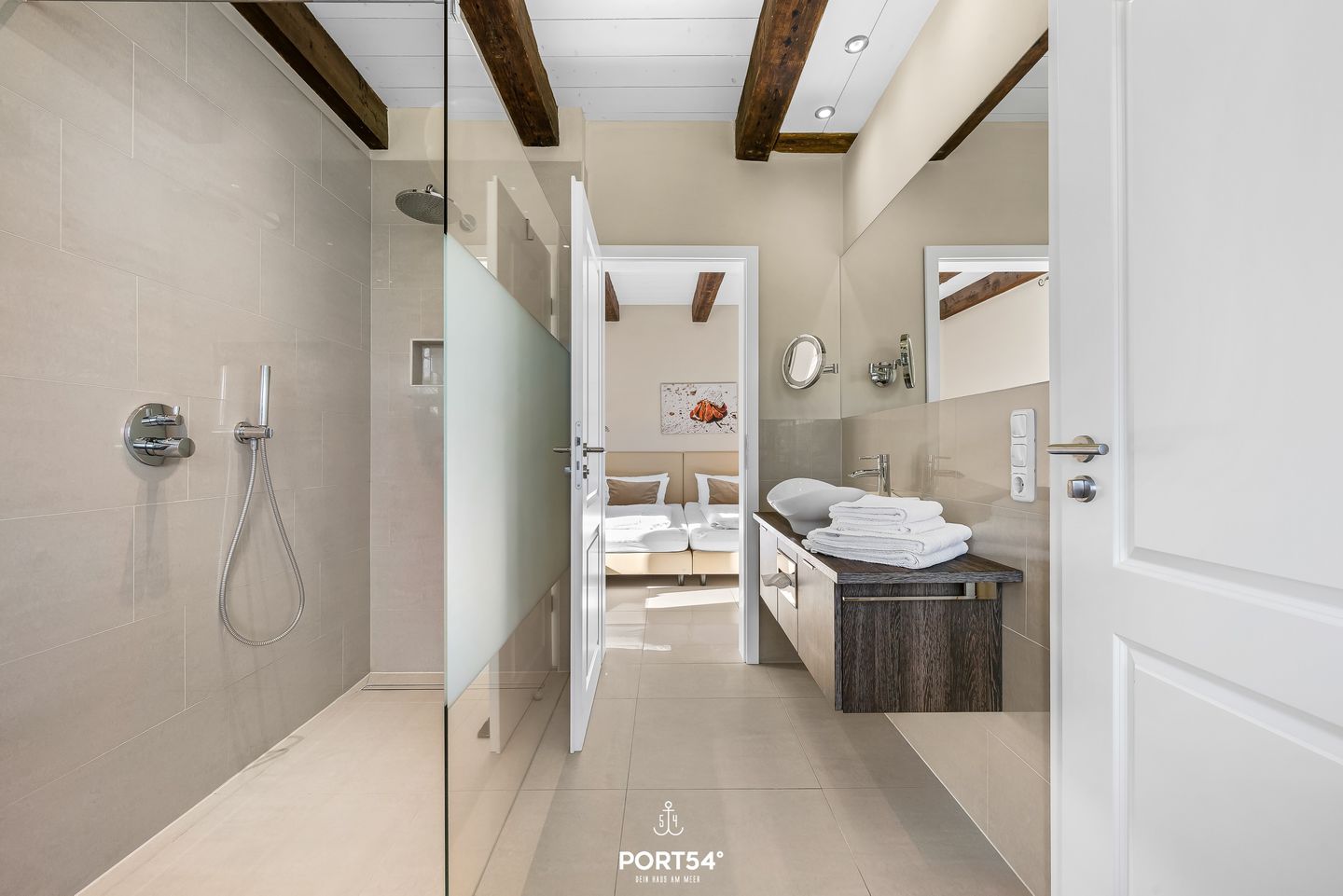 Der Wohnbereich ist offen mit der Küche verbunden und schafft ein angenehmes Wohngefühl mit Sofaecke und Essbereich. Für entspannte Abende stehen Ihnen TV, Radio, HiFi-Anlage und ein Blu-ray-Spieler zur Verfügung. Internet und WLAN sind vorhanden, ebenso ein Schreibtisch für ruhige Arbeits- oder Lesezeiten. Sichtschutz an allen Fenstern sorgt für Privatsphäre.