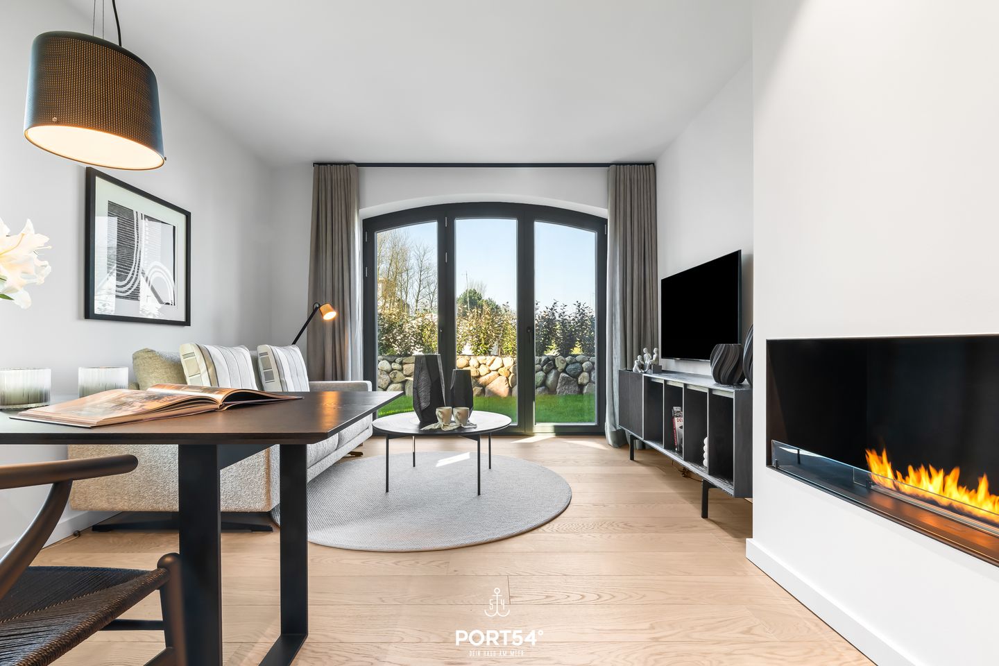 Die modern gestaltete Wohnung verfügt über ein geräumiges Schlafzimmer, das 180x200cm große Bett bietet Ihnen hierbei optimalen Schlafkomfort. Ein stilvolles Badezimmer mit bodengleicher Dusche ermöglicht es Ihnen, nach einem erlebnisreichen Tag an der Küste entspannen zu können. Der offene Wohnbereich mit einer voll ausgestatteten Küche lässt keine Wünsche offen: Induktionsherd, Backofen, Spülmaschine und zahlreiche Küchenutensilien sind vorhanden, sodass Sie Ihren kulinarischen Ideen freien Lauf lassen können. Genießen Sie Ihre Mahlzeiten am Esstisch oder auf dem gemütlichen Sofa. Die Küche von SieMatic ist außerdem mit einem Quooker ausgestattet, damit lässt sich problemlos heißes Wasser, sowie Sprudelwasser erzeugen.