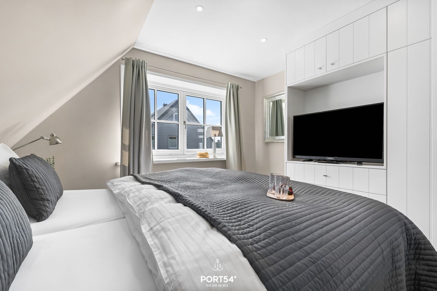 Ein besonderes Highlight des Hauses ist der private Wellnessbereich mit Sauna und Ruheraum. Nach einem langen Spaziergang am Königshafen, einer Fahrradtour über die Insel oder einem Tag am Meer bietet dieser Bereich ideale Entspannung. Die beiden modernen Badezimmer verfügen über großzügige, bodengleiche Duschen und Fenster für angenehmes Tageslicht. Für längere Aufenthalte stehen außerdem Waschmaschine und Trockner zur Verfügung. Bettwäsche, Handtücher und Geschirrhandtücher werden gestellt.