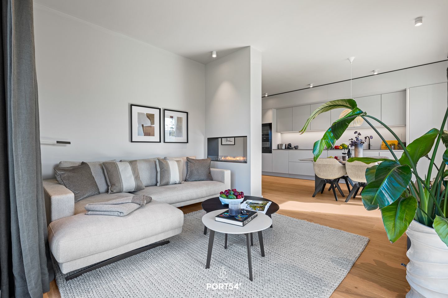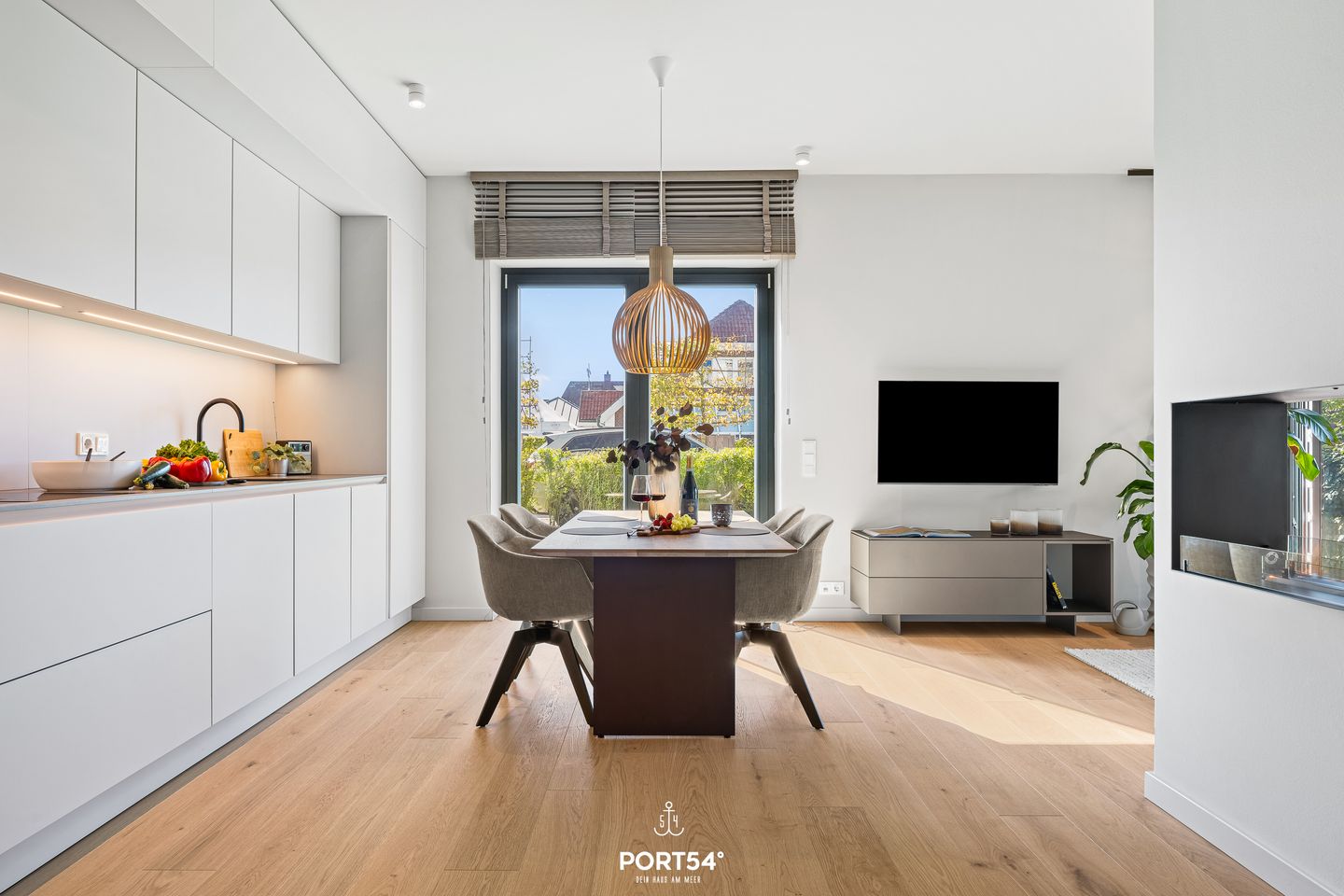 Mit zwei gemütlichen Schlafzimmern, eins ausgestattet mit einem Doppelboxspringbett der Marke Schramm (180x200cm), das andere mit einem Schlafsofa (160x200cm), einem stilvollen Wohnzimmer und einer offenen Küche erleben Sie hier ein harmonisches Wohngefühl. Die offenen Räume schaffen eine einladende Atmosphäre, während der Essbereich ideal für gesellige Abende mit Freunden oder der Familie ist. Genießen Sie die Vorteile einer tollen SieMatic Küche, die mit einem Induktionsherd, Backofen, Geschirrspüler und Weinkühlschrank ausgestattet ist. Außerdem finden Sie in der Küche einen Quooker, damit lässt sich problemlos heißes Wasser, sowie Sprudelwasser erzeugen.