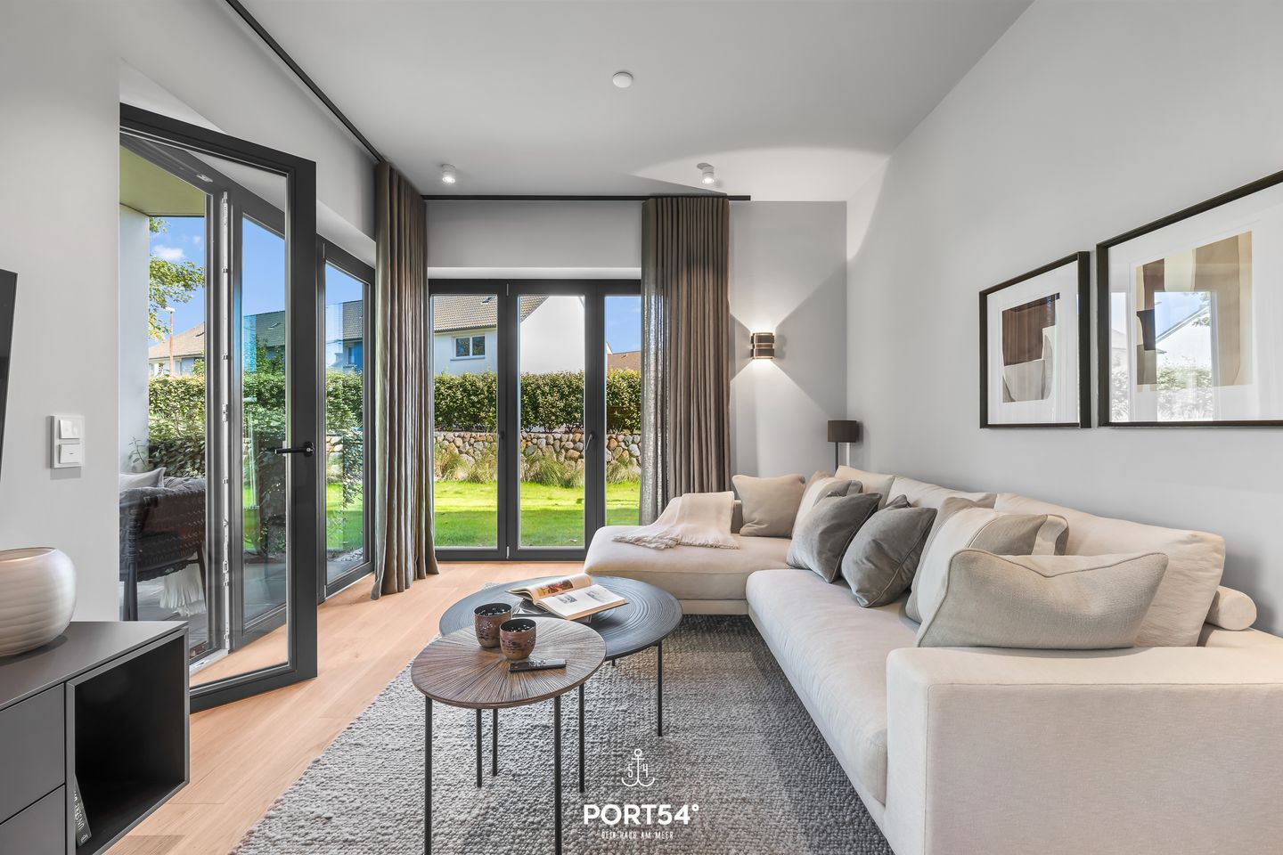 Herzstück der Wohnung ist der offene Wohnbereich, der Hell und einladend ist. Die moderne Küche von SieMatic ist mit einem Induktionsherd, Backofen, Wärmeschublade und einem Geschirrspüler voll ausgestattet. Außerdem finden Sie in der Küche einen Quooker, damit lässt sich problemlos heißes Wasser, sowie Sprudelwasser erzeugen. Für gemütliche Abende steht Ihnen ein bequemer Sofabereich zur Verfügung, um die Zeit gemeinsam zu verbringen oder einen Film auf dem Smart-TV zu genießen.