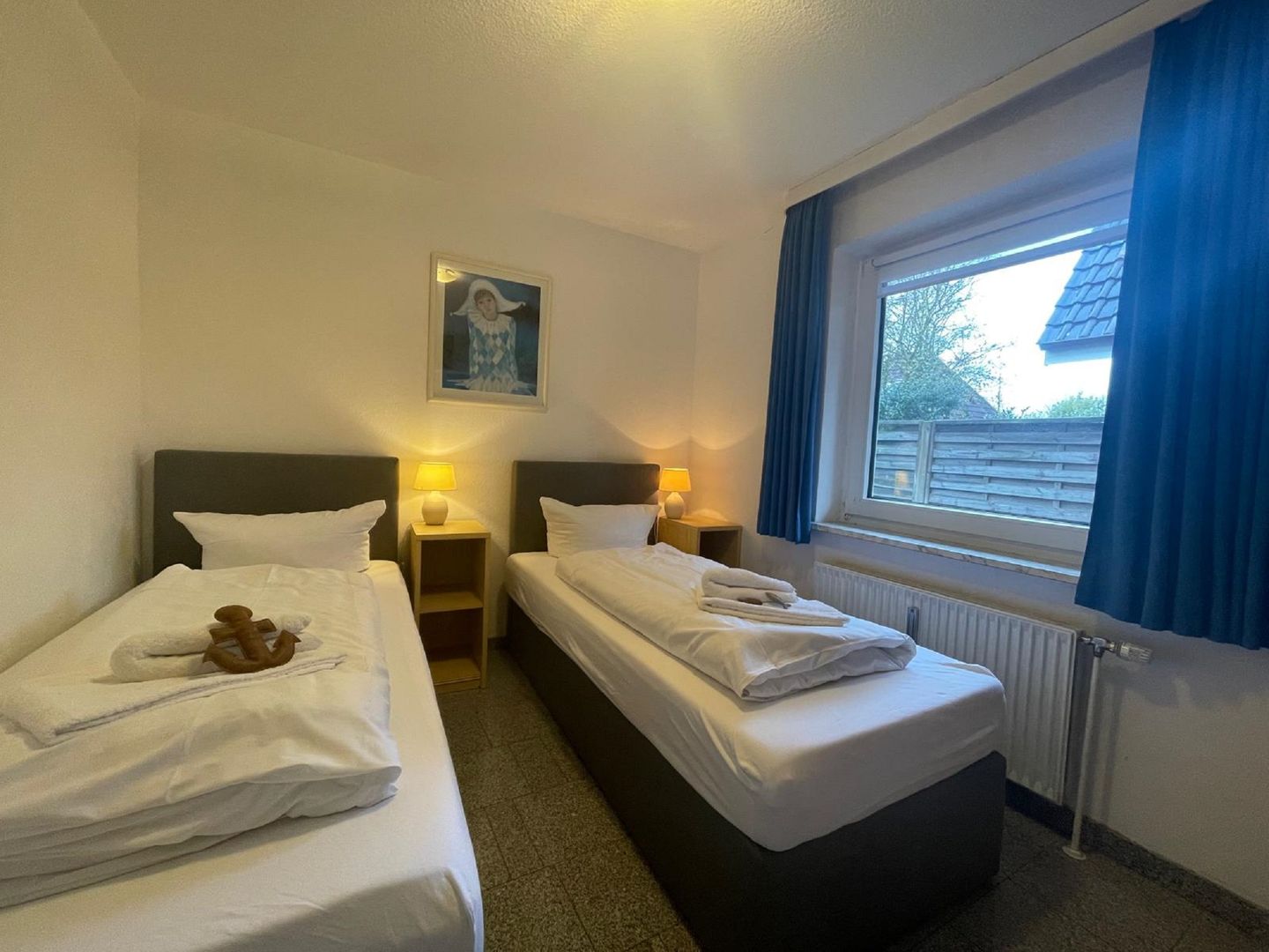 Die Ferienwohnung verfügt über ein Schlafzimmer mit zwei Einzelbetten die Sie nach Belieben auch zusammenstellen können sowie einem zusätzlichen Schlafsofa in der Sofaecke für bis zu zwei weitere Gäste. Elektrische Rollläden an allen Fenstern sorgen hierbei für eine zuverlässige Verdunkelung. Die große, einladende Wohnküche ist der Mittelpunkt der Wohnung, ausgestattet mit einer voll funktionalen Kochnische, einschließlich Elektroherd, Backofen, Geschirrspüler und einer Mikrowelle. Genießen Sie Ihre Mahlzeiten am Esstisch oder auf der schönen Terrasse mit Gartenmöbeln und Blick in den Garten, die genügend Raum für entspannte Stunden im Freien bietet.