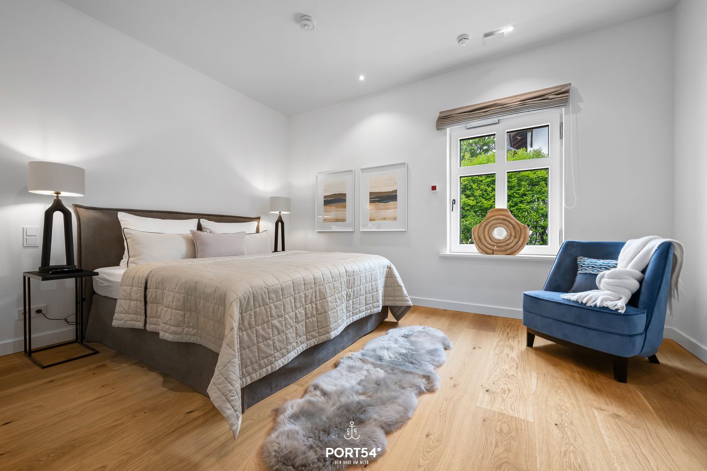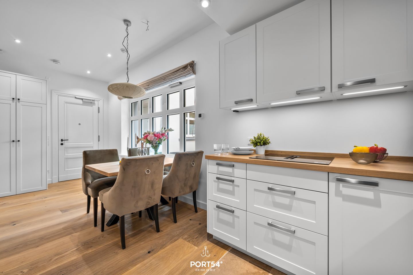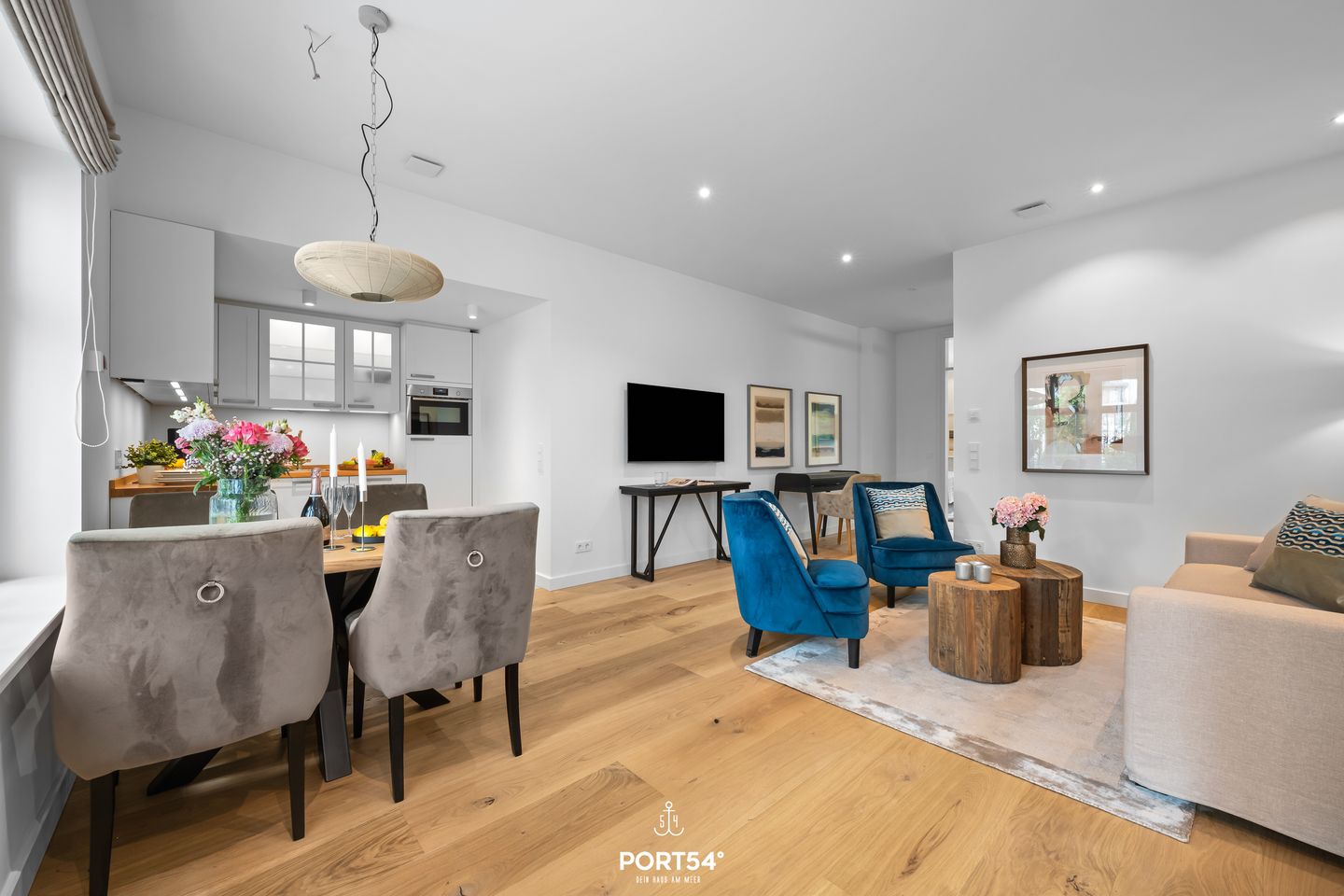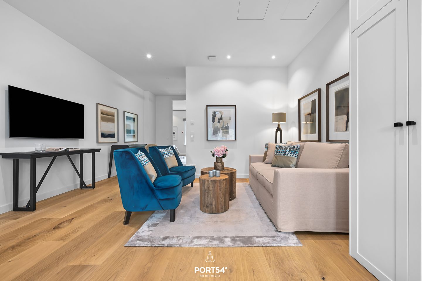 Mit einer großzügigen Grundfläche von 45 m² bietet die im Erdgeschoss gelegene Ferienwohnung ausreichend Platz für bis zu drei Personen. Die lichtdurchfluteten Räume sind geschmackvoll eingerichtet und die offene Küche, die zum Wohnzimmer hin gestaltet ist, lädt dazu ein, kulinarische Köstlichkeiten zuzubereiten. Hier finden Sie alle notwendigen Geräte wie einen Elektro-Herd mit Induktionskochfeld, einen Backofen, eine Spülmaschine, einen Kühlschrank mit Gefrierfach und vieles mehr. Das Schlafzimmer ist mit einem gemütlichen Doppelbett, Verdunkelungsmöglichkeiten und einem Smart TV ausgestattet.