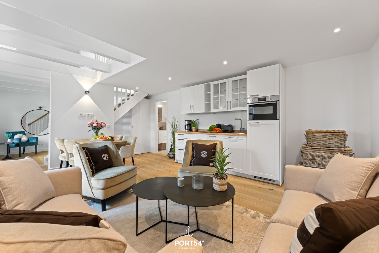 Auf 72 m² Wohnfläche im 1. Obergeschoss erwartet Sie moderner Komfort für bis zu vier Personen. Die offene Wohnküche ist hochwertig ausgestattet – mit Induktionskochfeld, Backofen, Spülmaschine, Kühlschrank mit Gefrierfach u. v. m. Zwei gemütliche Schlafzimmer (eines im Obergeschoss, eines im Dachgeschoss) bieten erholsame Nächte dank Verdunkelungsmöglichkeiten und bequemen Doppelbetten (beide 180x200 cm).