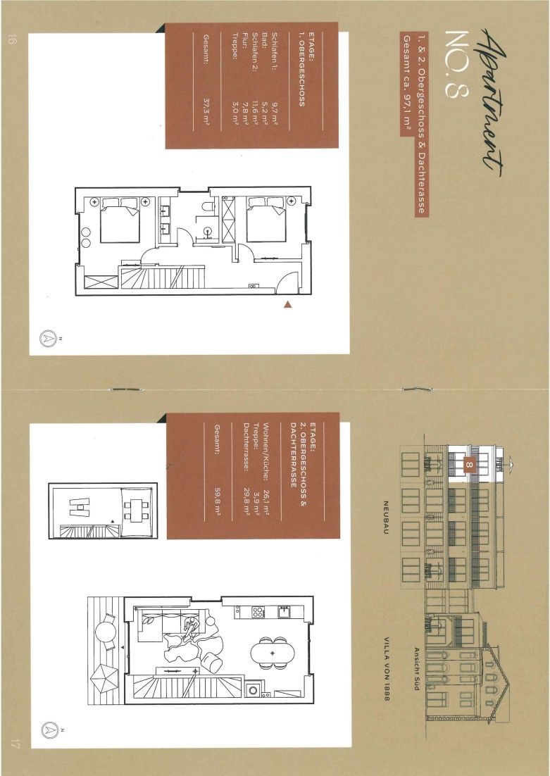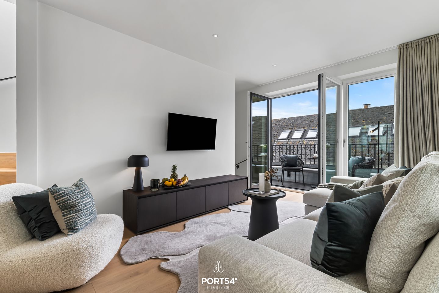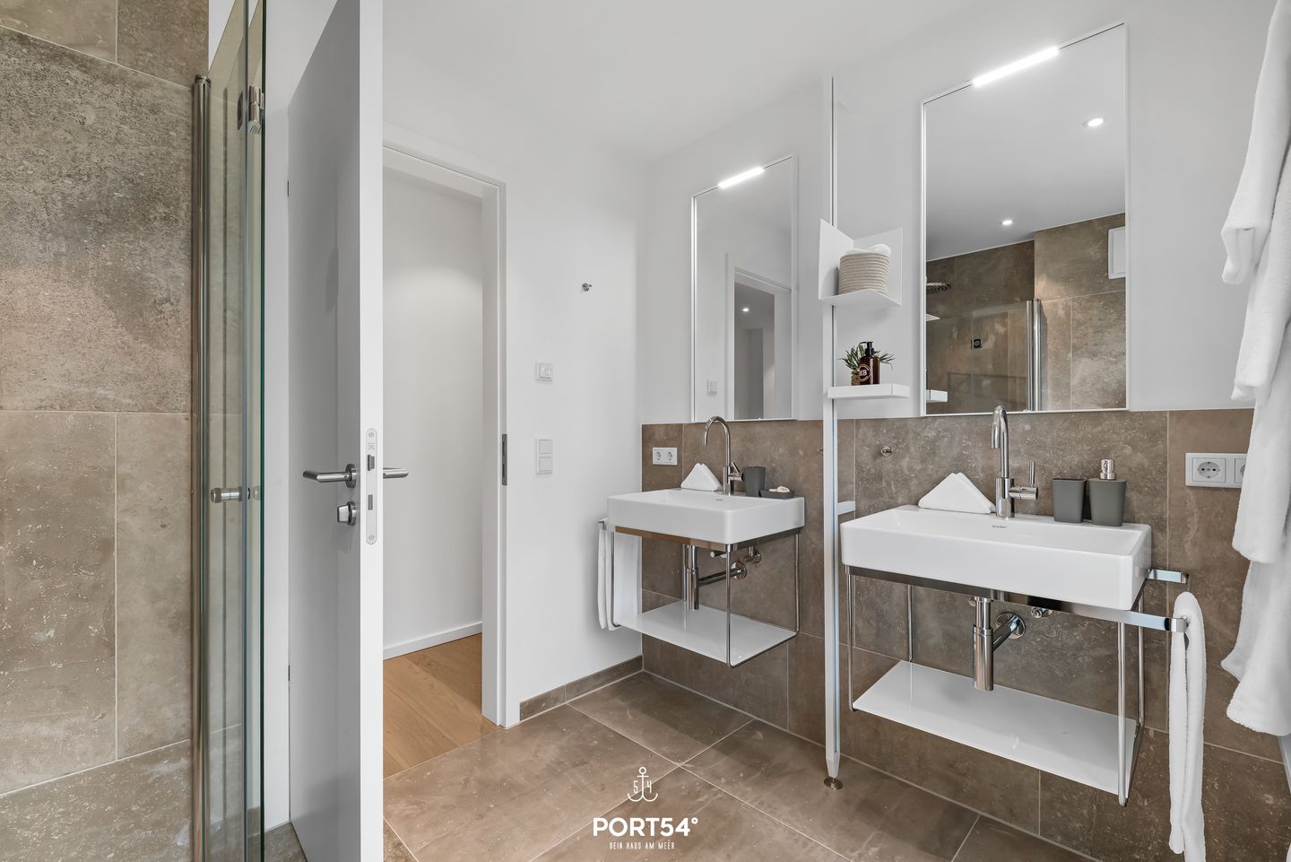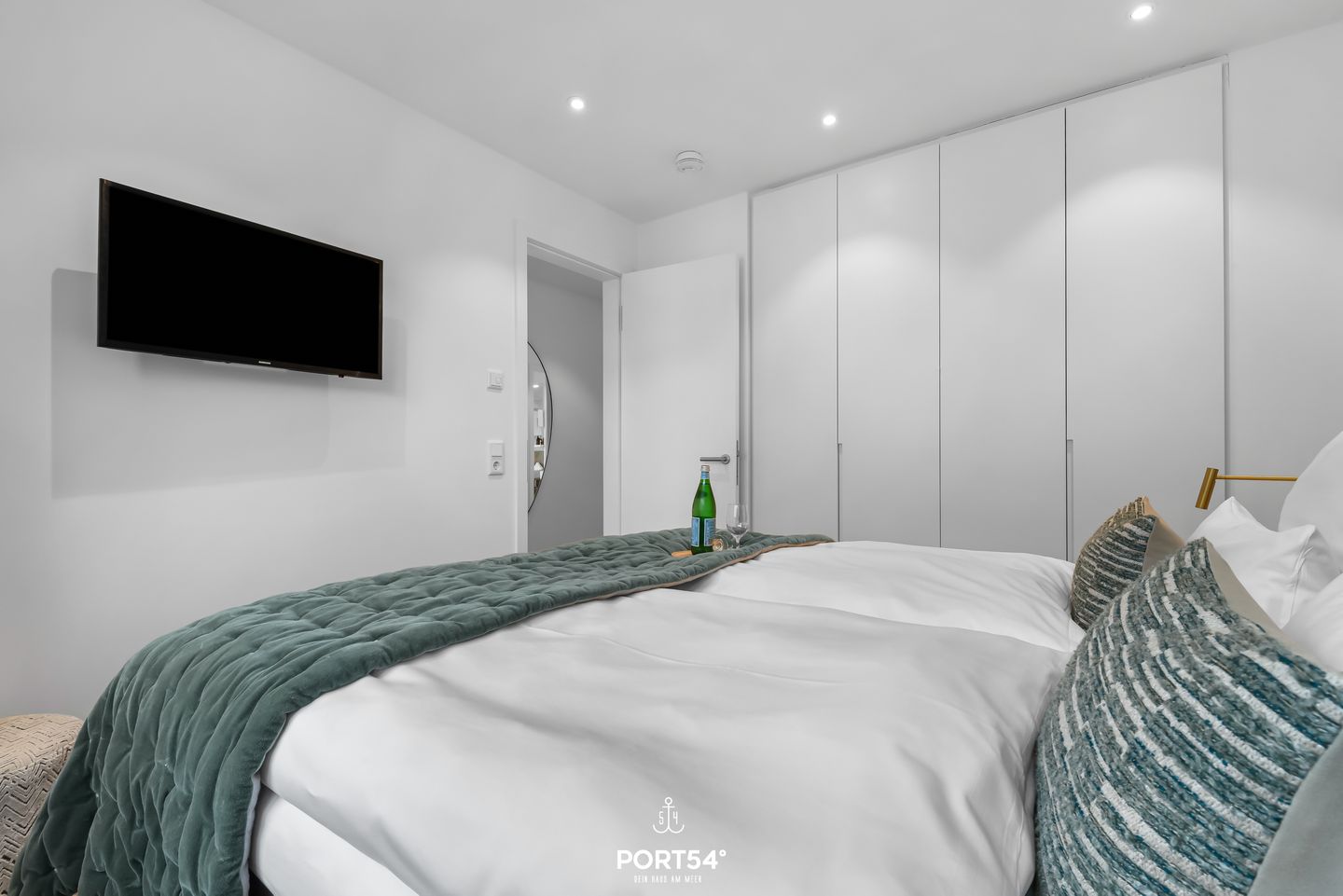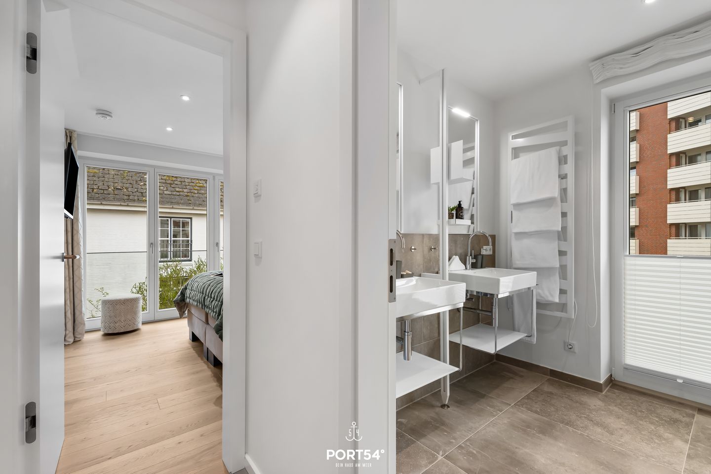 Das Luxus Maisonette Apartment bietet im 1. und 2. Obergeschoss Platz für bis zu vier Personen. Auf der ersten Etage erwarten Sie die beiden Schlafzimmer mit je einem Doppelboxspringbett, Flachbild-TV und Verdunkelungsmöglichkeiten, perfekt für Ihre Nachtruhe. Außerdem finden Sie auf der Etage das Master-Bad mit Doppelwaschbecken, Regendusche, Föhn und WC. Im zweiten Obergeschoss befindet sich der offene Wohn- und Essbereich mit vollausgestatteter Küche, Balkon und Zugang zur großen Dachterrasse. Hier haben Sie genug Platz um die frische Nordseeluft auf dem Dach zu genießen.