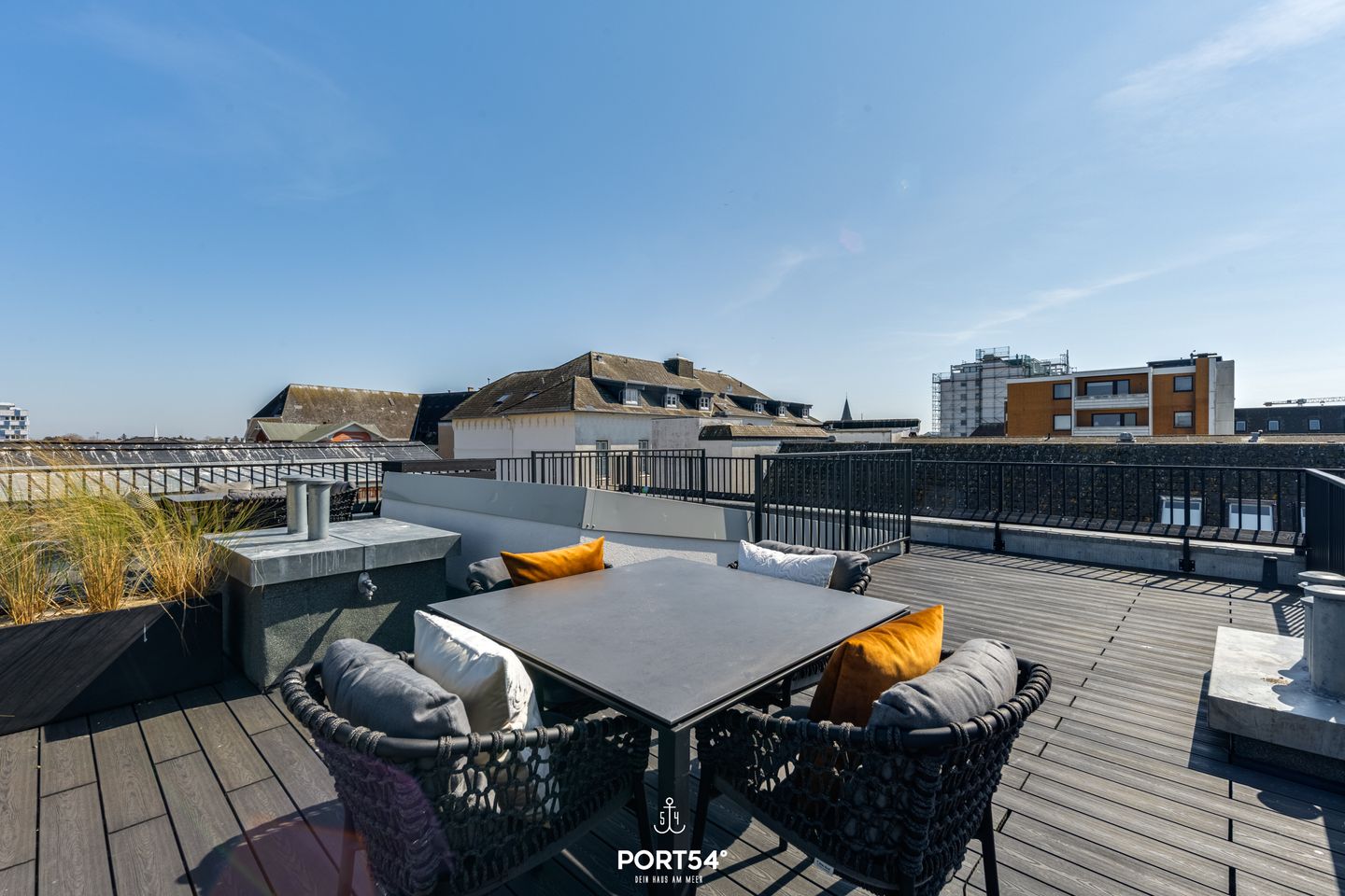 Das Luxus Maisonette Apartment bietet im 1. und 2. Obergeschoss Platz für bis zu drei Personen. Auf der ersten Etage erwarten Sie die beiden Schlafzimmer eins mit einem Doppelbett (180x 200 cm) und eins mit Einzelbett (100 x 200 cm), Flachbild-TV und Verdunkelungsmöglichkeiten, perfekt für Ihre Nachtruhe. Außerdem finden Sie auf der Etage das Master-Bad mit Doppelwaschbecken, Regendusche, Föhn und WC. Im zweiten Obergeschoss befindet sich der offene Wohn- und Essbereich mit vollausgestatteter Küche, Balkon und Zugang zur großen Dachterrasse. Hier haben Sie genug Platz um die frische Nordseeluft auf dem Dach zu genießen.