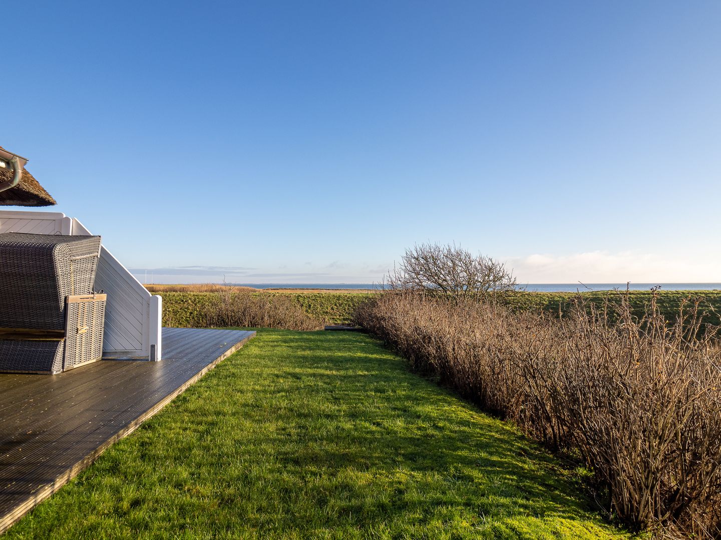 Unser Lieblingsplatz ist die Süd-Terrasse, genieße hier den Ausblick über die Nordsee und entspanne dich im Strandkorb.
