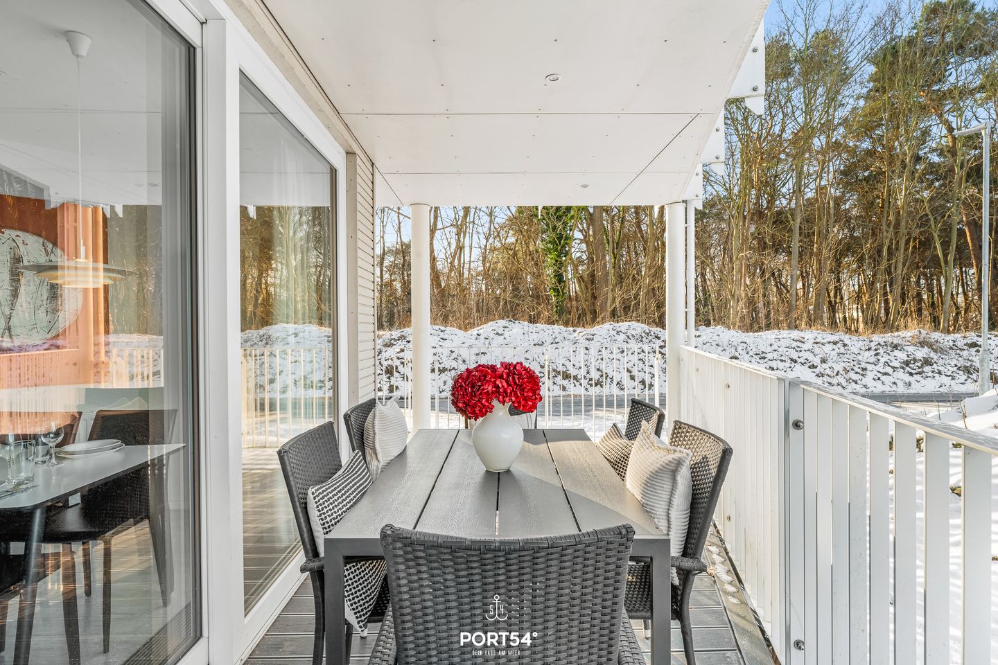 Der große Balkon ist mit Balkonmöbeln ausgestattet und lädt zum Entspannen an der frischen Seeluft ein – sei es zum Frühstück im Freien oder zum Tagesausklang. Ein kostenloser Stellplatz steht Ihnen in unmittelbarer Nähe der Unterkunft in einem überdachten Parkhaus kostenfrei zur Verfügung. Das gesamte Objekt ist mit Sichtschutz an allen Fenstern versehen und als Nichtraucherwohnung ausgewiesen.