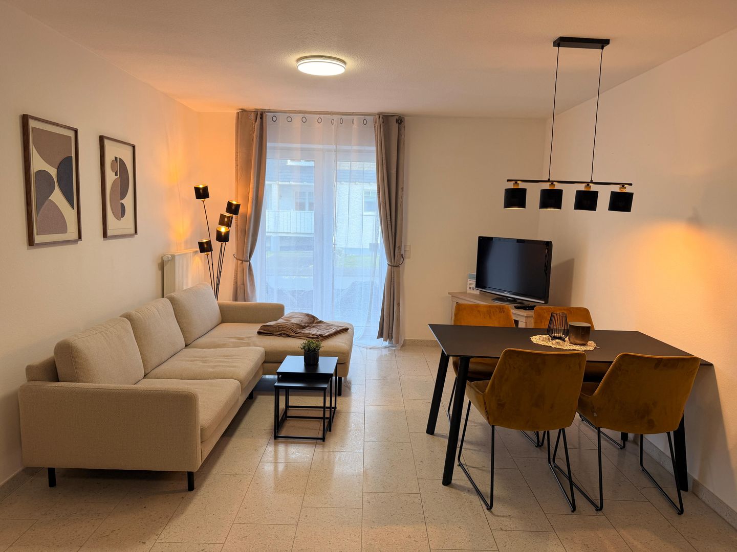 Das Wohnzimmer lädt mit einer komfortablen Sofaecke und zwei Fernsehern zum Ausspannen ein. Für wohlige Wärme sorgt sowohl eine Zentral- als auch eine Fußbodenheizung. Die offene Küche ist umfassend ausgestattet und lässt keine Wünsche offen: Ein Cerankochfeld, Backofen, Geschirrspülmaschine, Mikrowelle, Kühlschrank mit Gefrierfach, Dolce-Gusto-Espressomaschine, Kaffeemaschine, Wasserkocher, Toaster sowie reichlich Geschirr und Kochutensilien stehen bereit. Der Essbereich ist zentral platziert und bietet Platz für alle Gäste. Waschmaschine, Staubsauger und weitere praktische Ausstattungsmerkmale wie ein Haartrockner und ein Spiegel sind vorhanden. Die Unterkunft ist als Nichtraucherwohnung ausgewiesen.